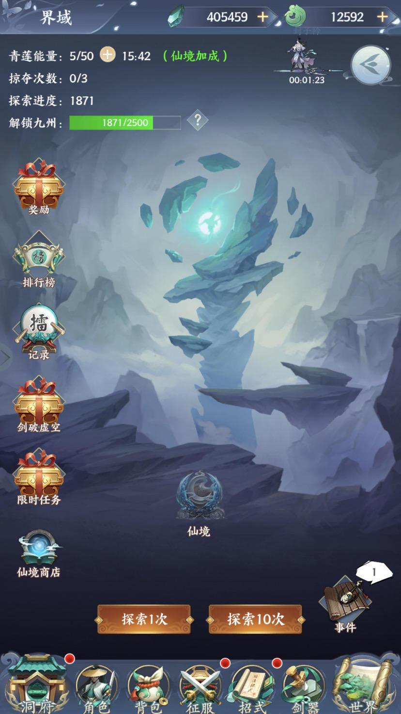 开了异域,搜索有仙境,一个区前9能打坐,每晚18:00重置。