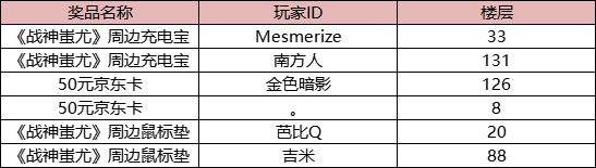 《战神蚩尤》晒预约送大礼活动已圆满结束,恭喜以下玩家获得我们的奖励!