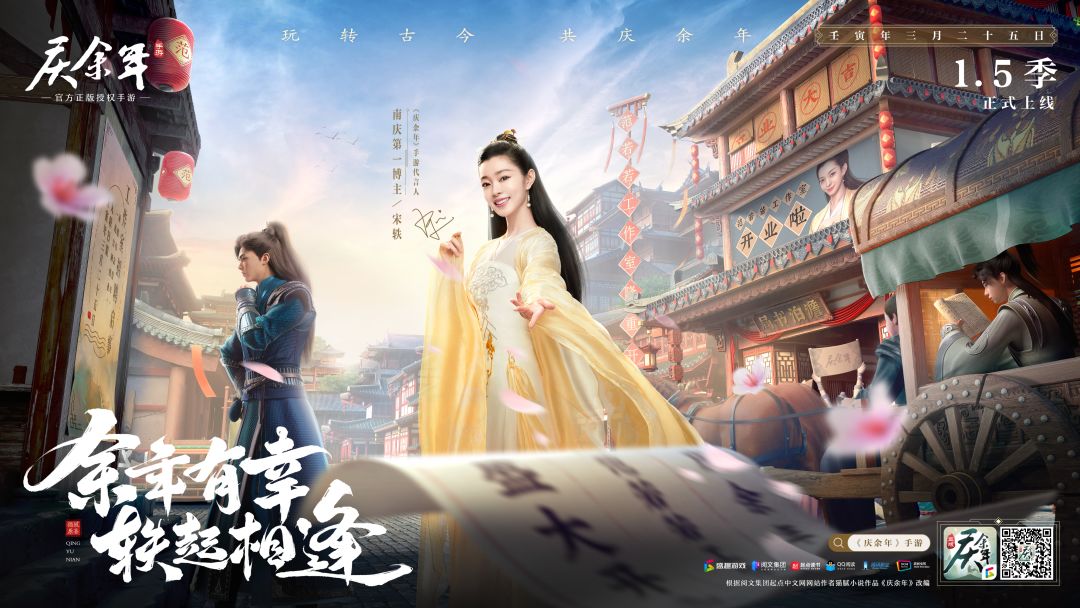 余年有幸,轶起相逢!由盛趣游戏旗下传世工作室自主研发的MMORPG《庆余年》手游,将在3月25日全平台上线,今日官方正式宣布宋轶成为游戏代言人,同时公布了一张宣传海报,宋轶再度饰演“京都第一才女”范若若,化身南庆第一博主,邀请玩家粉丝一起玩转古今,共庆余年。
