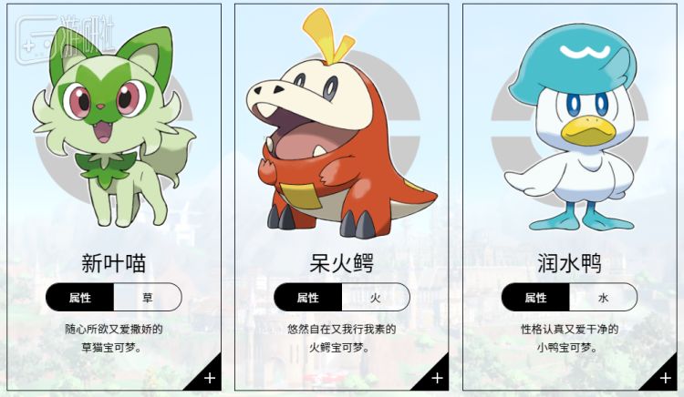 上个月,任天堂刚刚公布了关于宝可梦新作《宝可梦 朱/紫》的最新消息,作为惯例,官方公布的前三只宝可梦依旧是初始御三家:新叶喵、呆火鳄、润水鸭。
