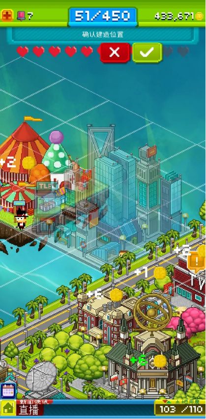 而道路(好处:不占用土地使用度)废废废,除了可以美化城市的布局,一无是处。(tip:点击土地建造后,连续点击空地,可以一口气建造好几块空地~
