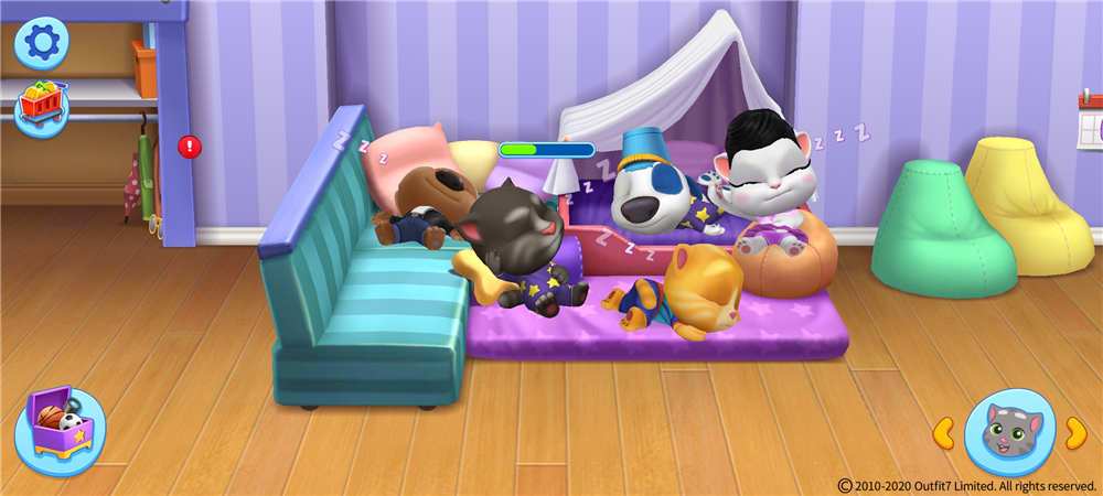 2、在角色的日常游戏、吃饭、医疗、睡眠和社交互动之外,《汤姆猫总动员》为每个角色提供了5条属性养成线。这五个属性对应着角色在不同娱乐、工作中的熟练度,当达到对应星级即可获得道具奖励。