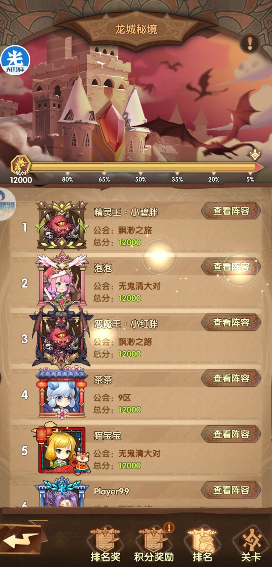 其他的就不多说了,看配置应该也知道该怎么打,练度低的号欢迎留言咨询,觉得写得很菜鸡的,也欢迎关注一下,以后会有更菜的攻略贡献出来。