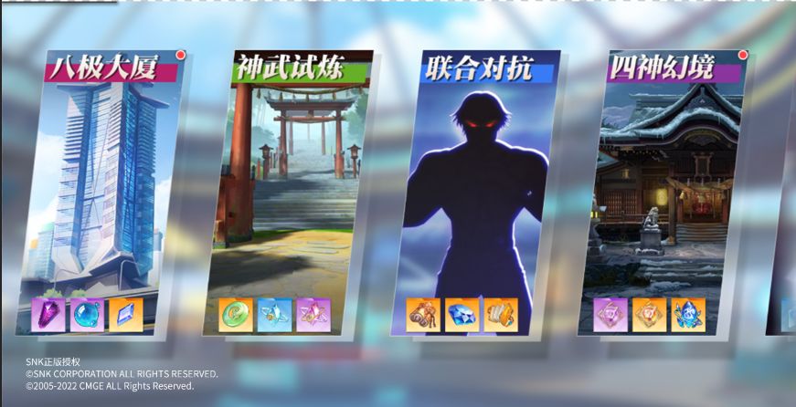 金币:可通过剧情探索、关卡进度宝箱获得、“福利”中的招财祈福、每日签到、每日特惠,每日任务、成就、限时活动、主题活动、“活动”中的战力挑战、战幕玩法中的八极大厦、协会募捐宝箱、有奖问答等方式获得。