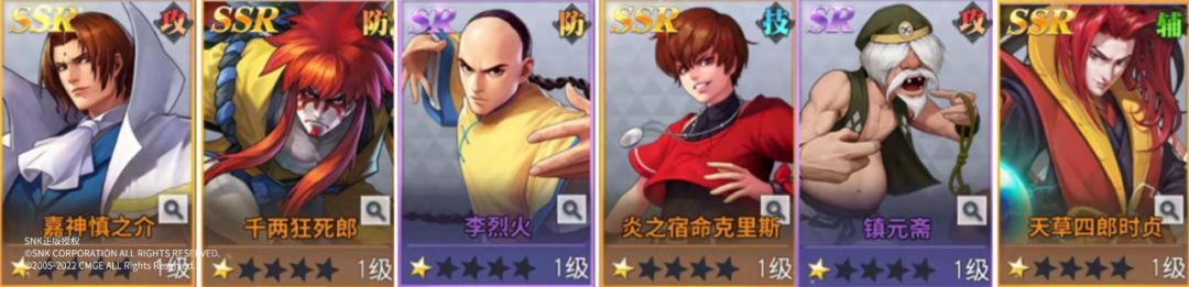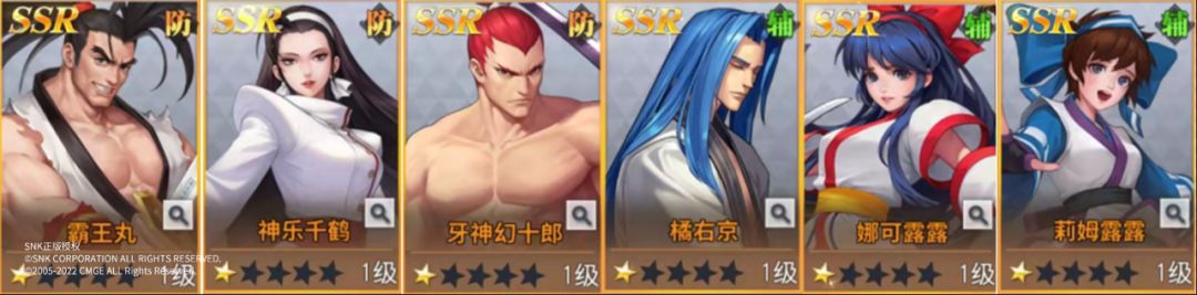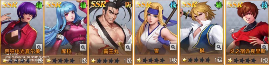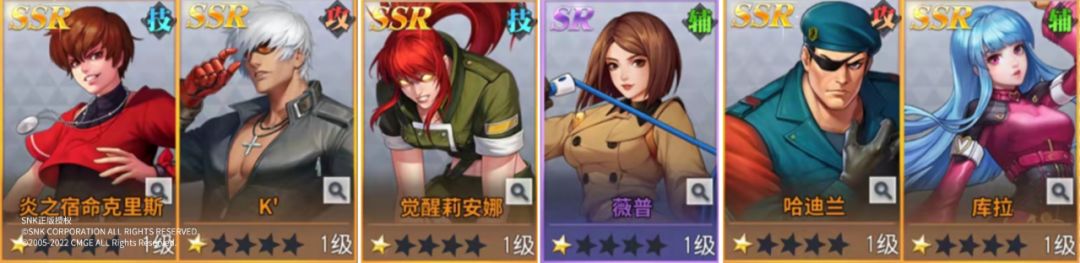前排:炎之宿命克里斯 觉醒莉安娜 薇普;后排:K' 哈迪兰 库拉