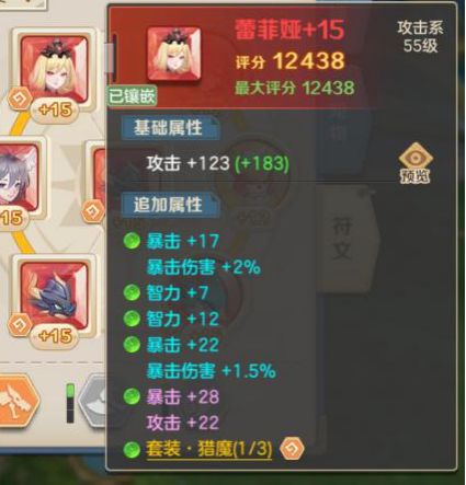 黑龙追加攻速、物攻比属性;蕾菲娅追加暴击伤害属性,正是毁灭爆发型所需要的。