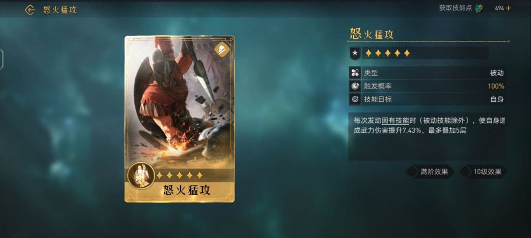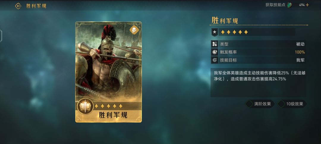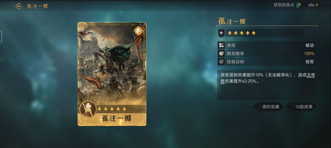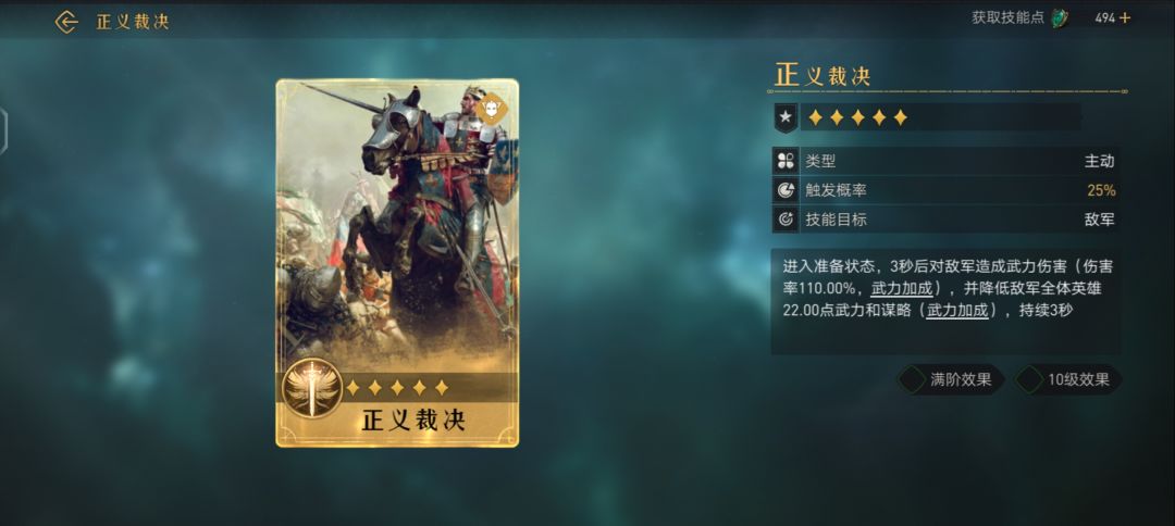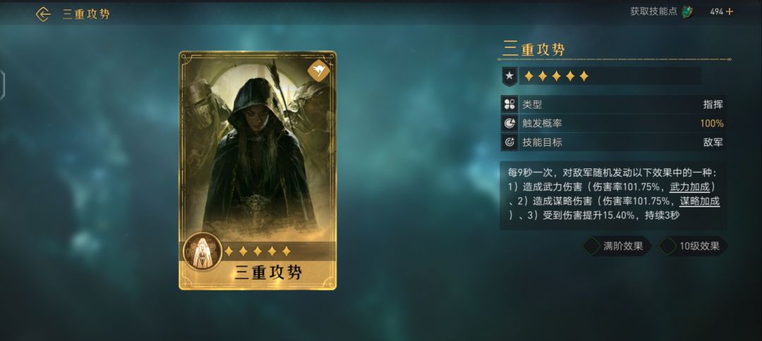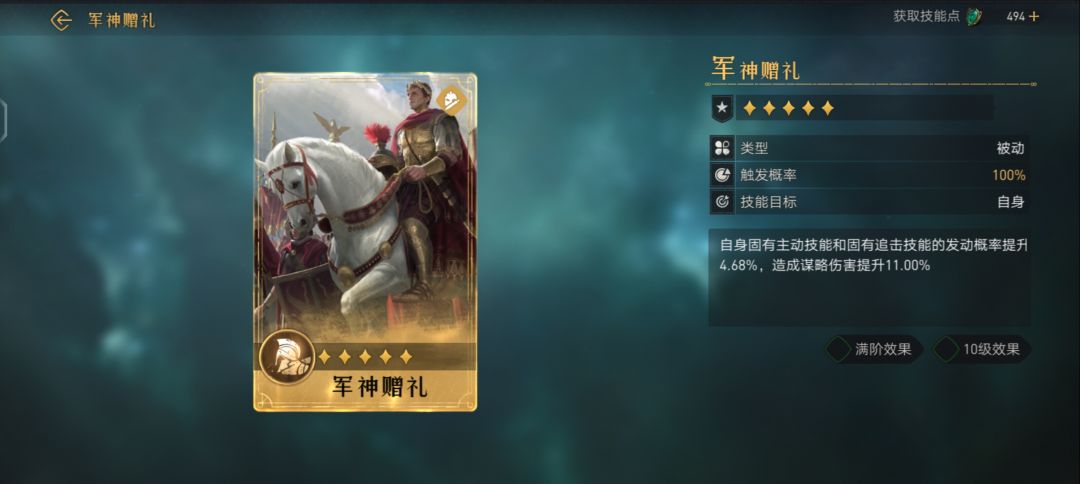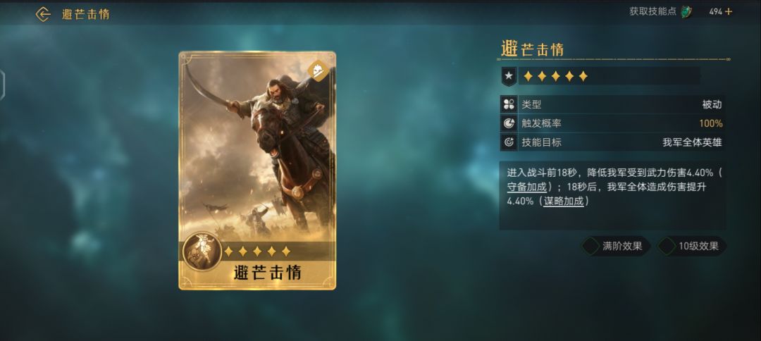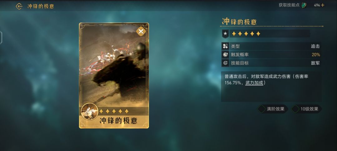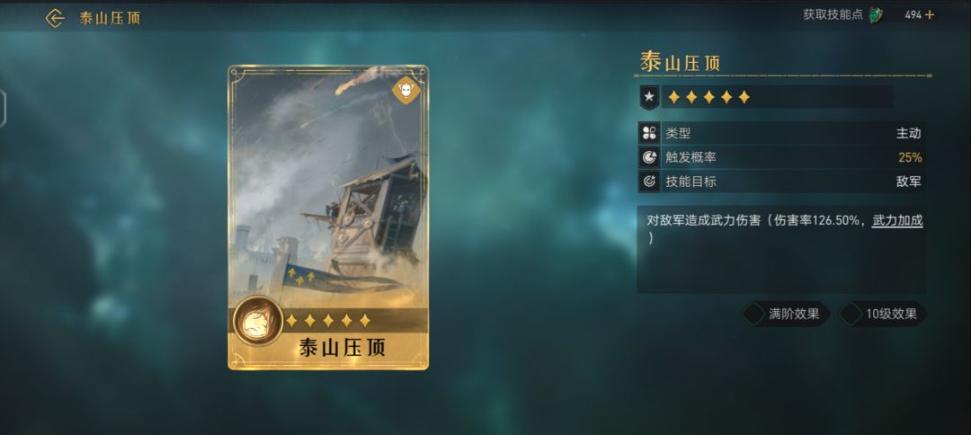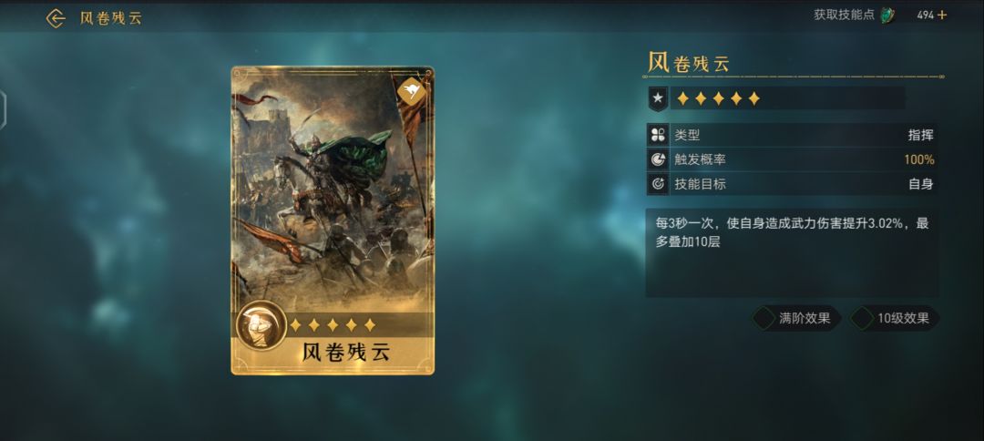 对敌军造成武力伤害(伤害率126.50%,武力加成满阶效果 10级效果