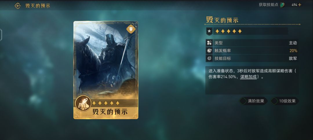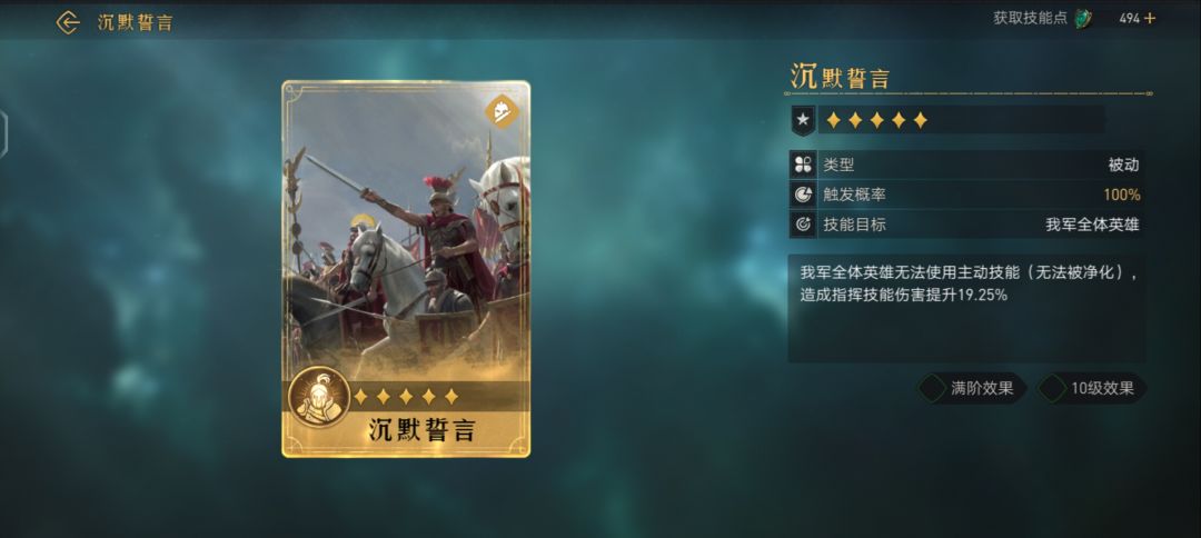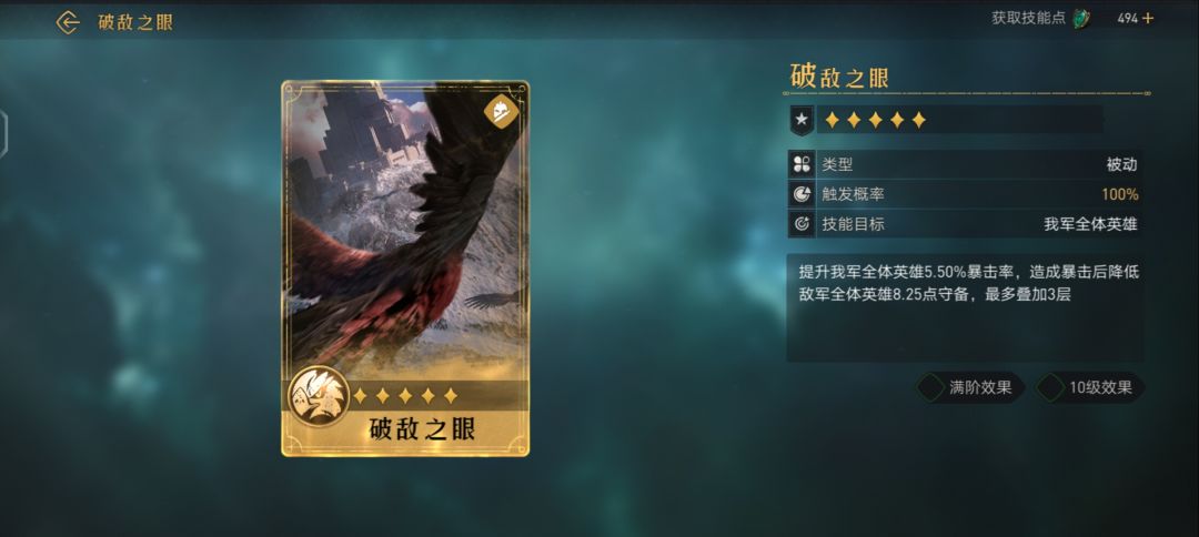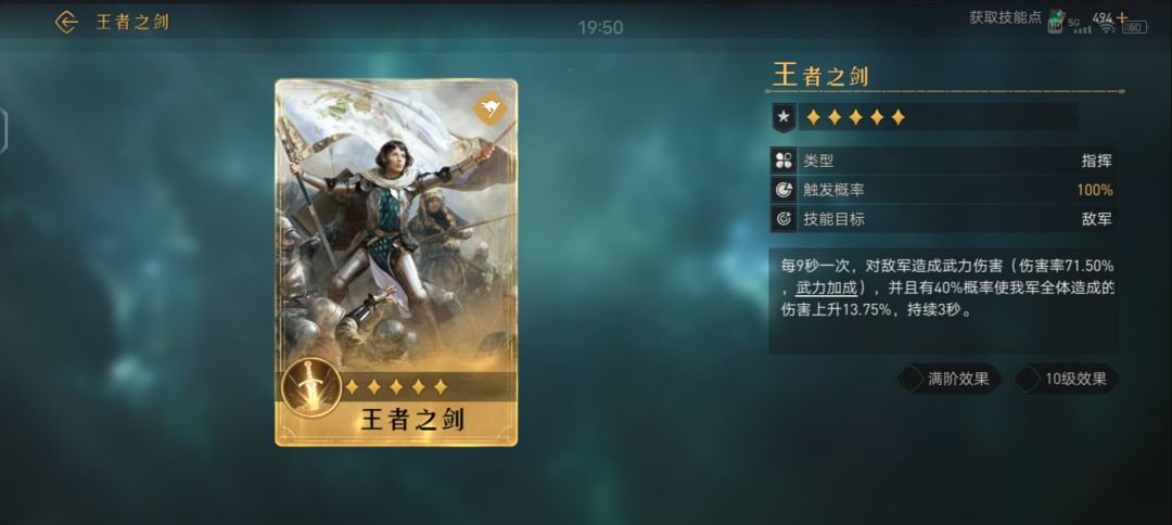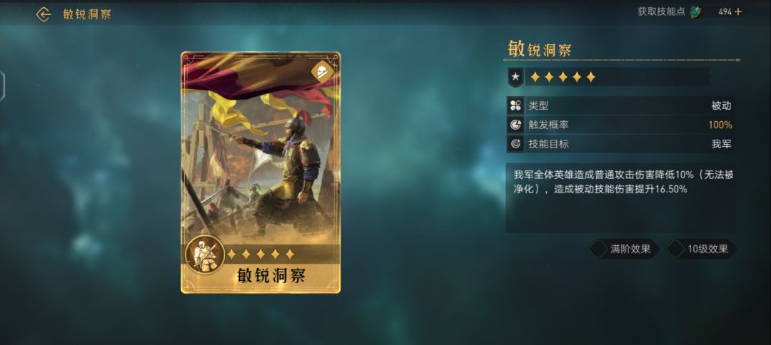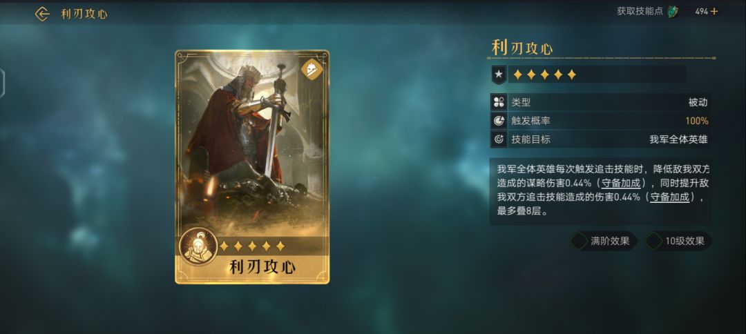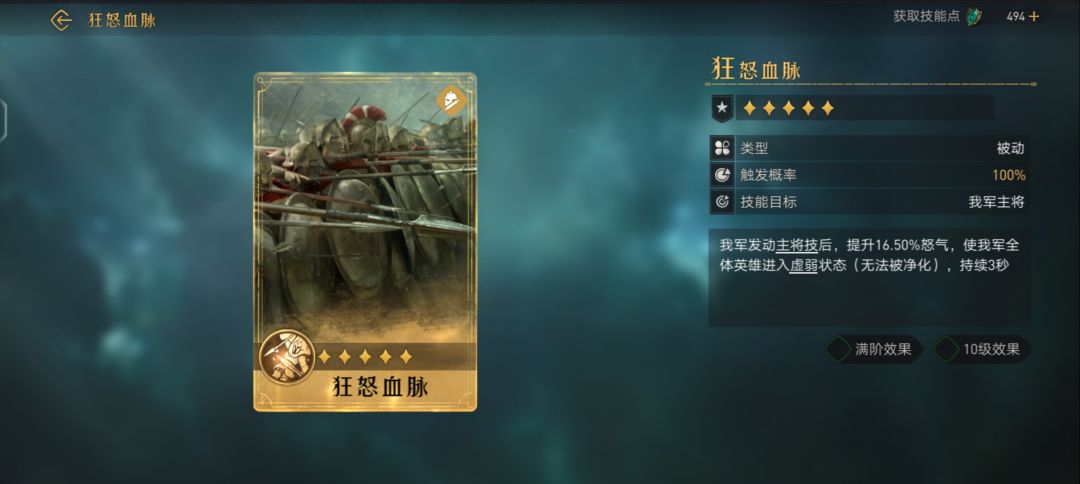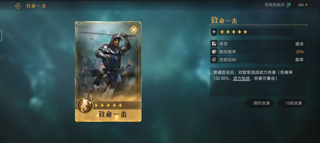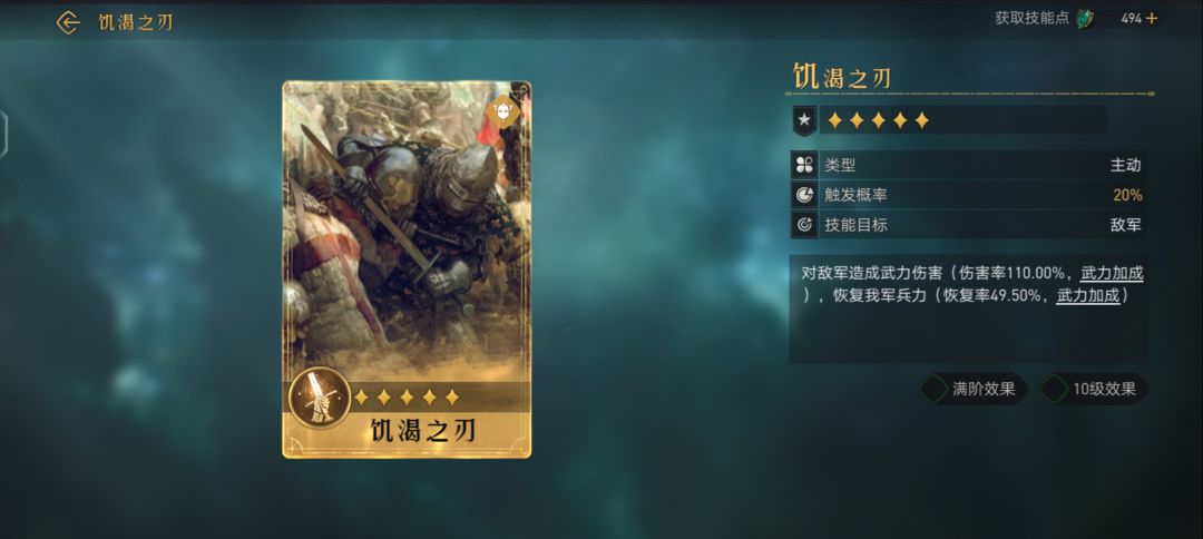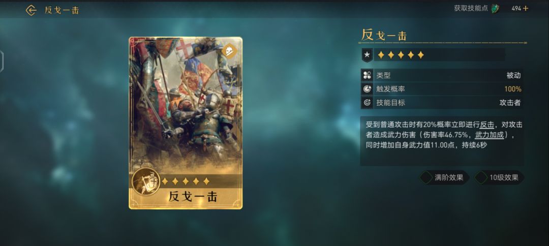 对敌军造成武力伤害(伤害率126.50%,武力加成满阶效果 10级效果