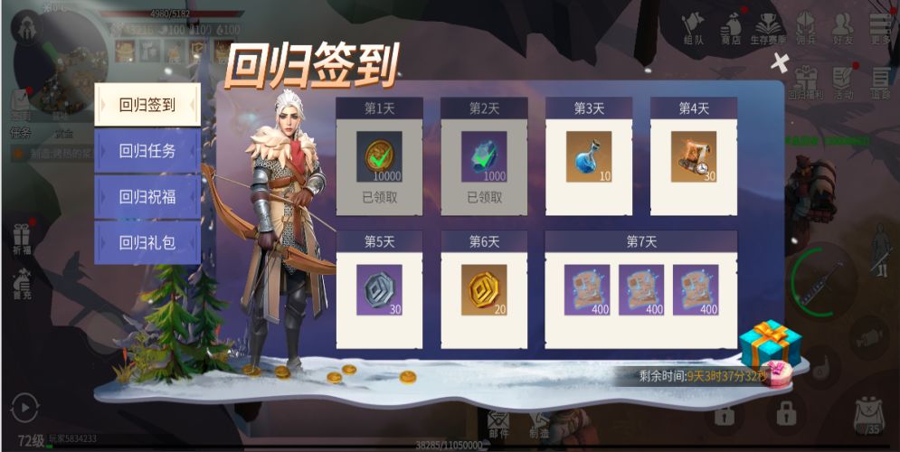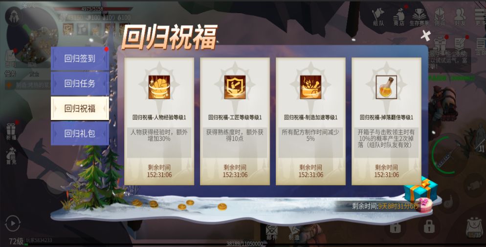 大家只要满足回流条件(超过15天未登录,等级大于10),再次登录冰原即可每天领取丰富的道具奖励,连续7天,每天都有助力升级的奖励可以领取。