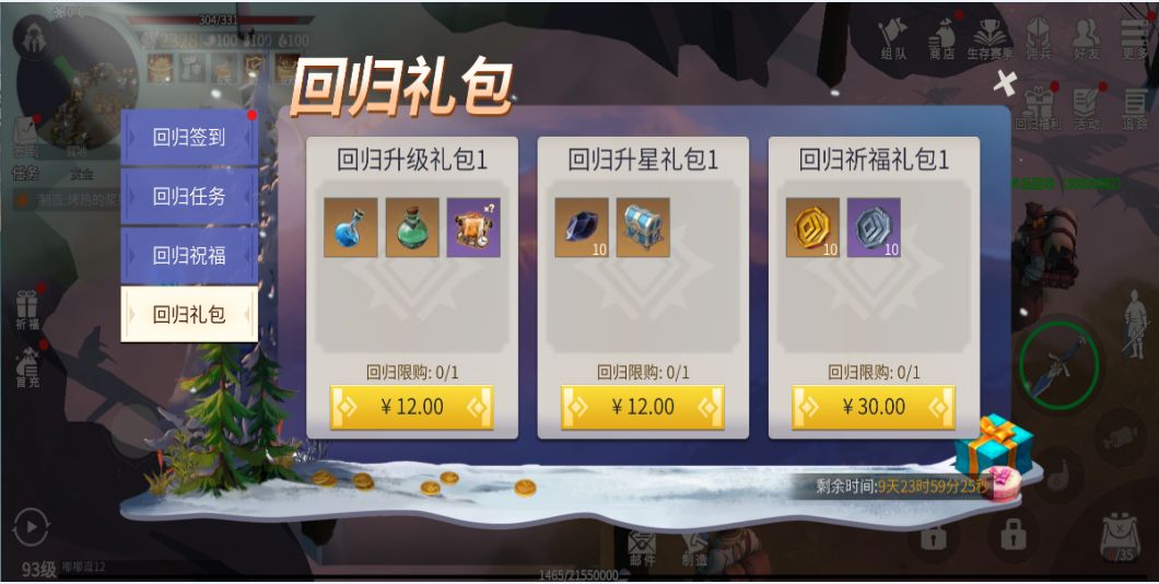 三、回归礼包游戏内还有超值的回归升级礼包,玩家可以超值购买到追赶游戏进度各档位礼包,内含经验药水、体力药水和大量的古金币等。