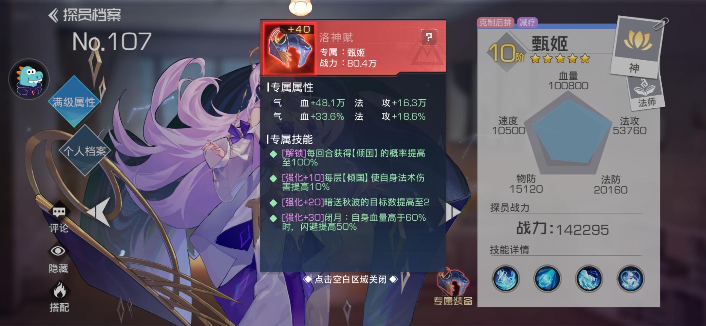 官方制作用点心,推荐2个一样的特性,还有一个甄姬的专武30,这堆起来不得180的闪避,后排法师,180的闪避,如果再加上高输出,那我想秒他应该怎么搞呢😅