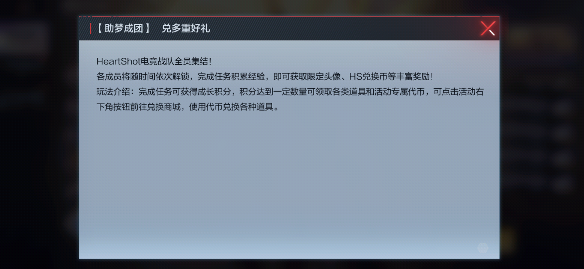 HeartShot助梦集结活动共持续30天,前10天每2天解锁一个角色,后20天为战队界面。期间大家可以通过完成任务累计经验,经验达到一定数量后可陆续获得角色头像、HeartShot兑换币等奖励。