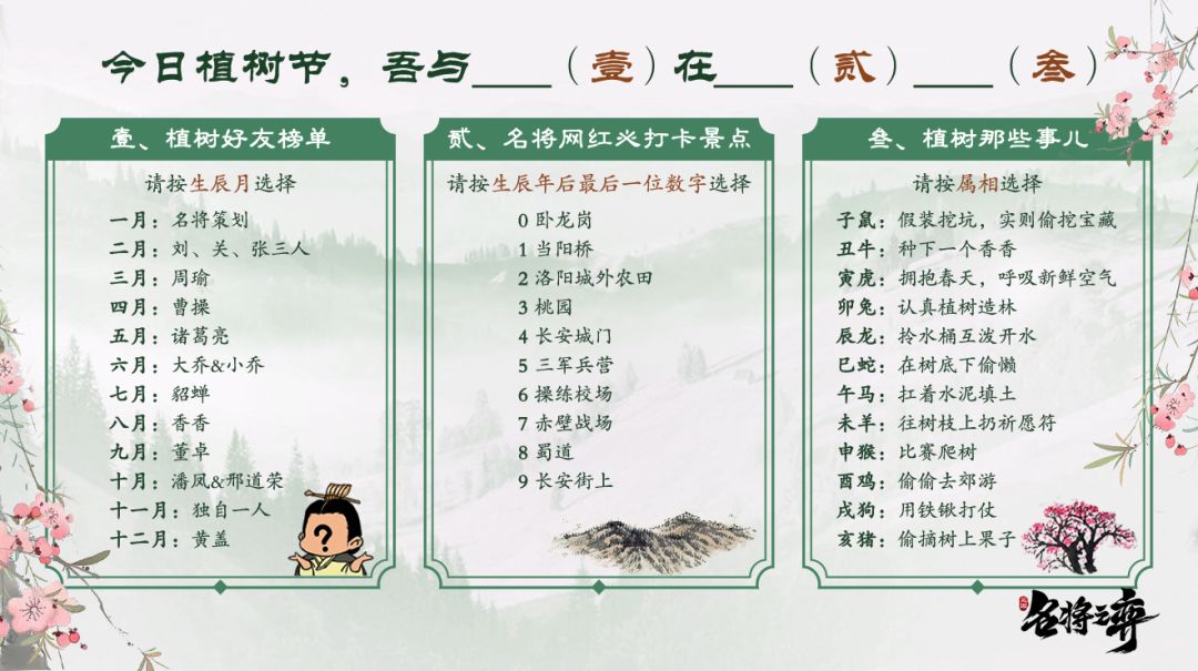 主公们在三国中的前世、现世的今生都度过了怎样的植树节呢?
