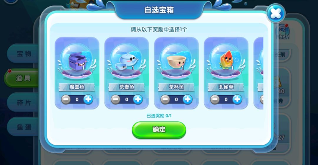 在许愿池中含有超多稀有材料和多种活动限定鱼自选宝箱,馆长们获取自选宝箱时,可以挑选最想要的奖励哦,获得的自选宝箱可在背包中查看~