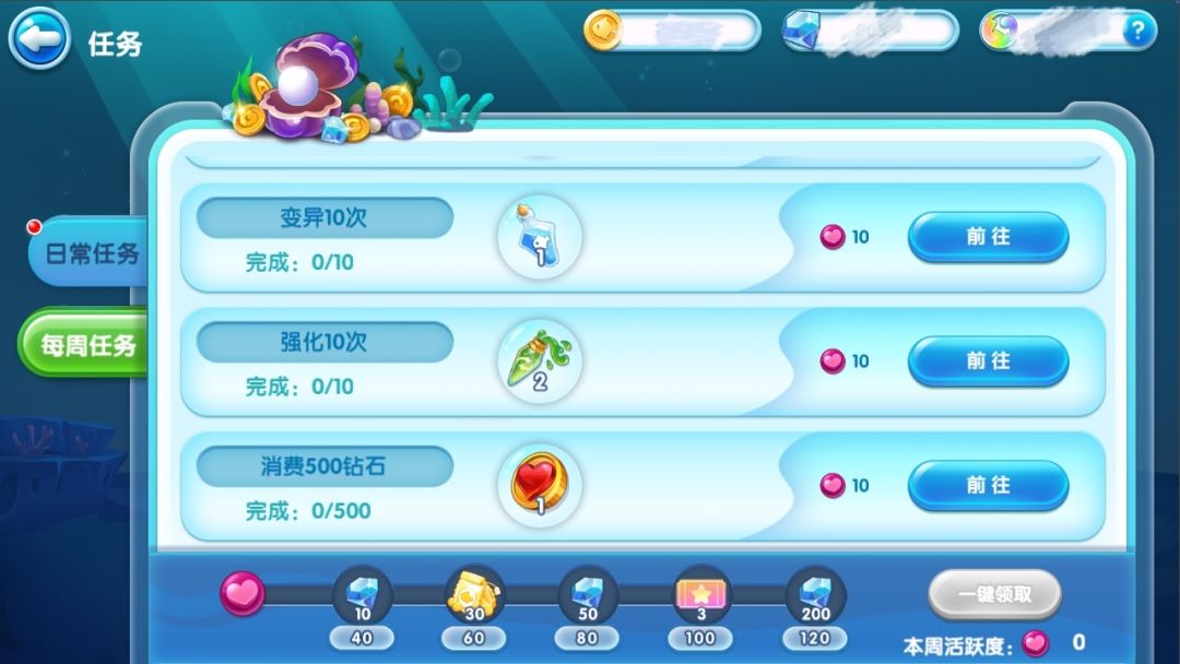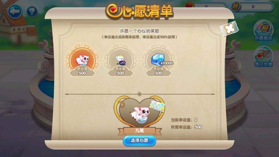 在日常游戏期间完成每日充值、每周任务后都会获取相对应的许愿币。