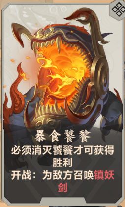 第6回合开始:回合末将随机敌方部属移动至随机空格。被搞乱后,不与“镇妖剑”相邻的部属就会在下一回合被吞噬!