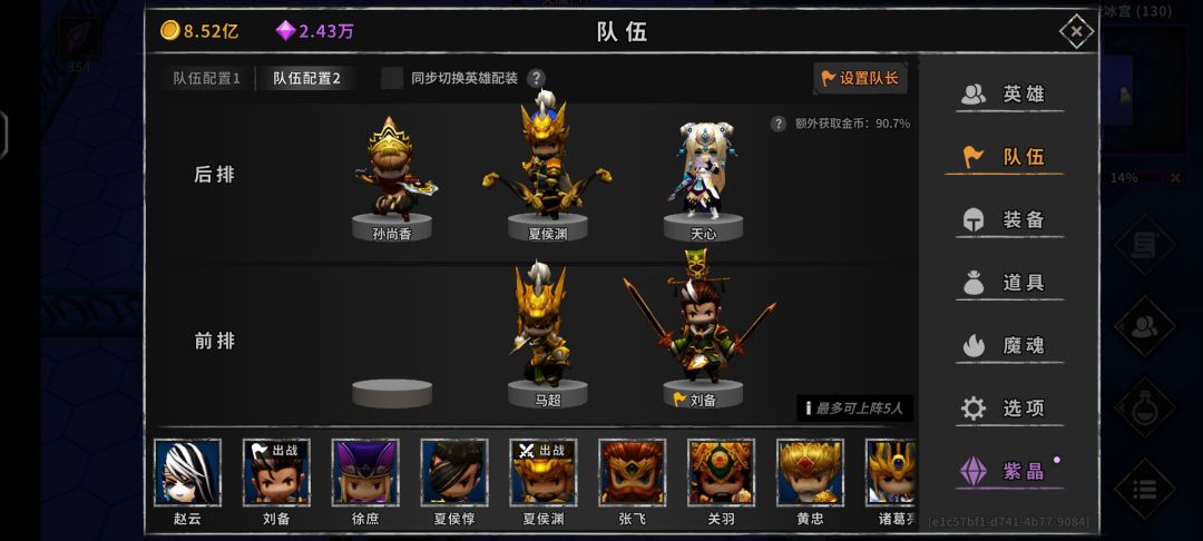 阵容组成由 天心 夏侯渊 马超 刘备 孙尚香
