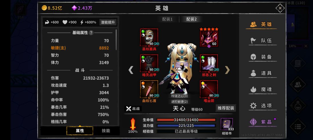 装备上三颗绿敏捷 武器上橙色 加吸血