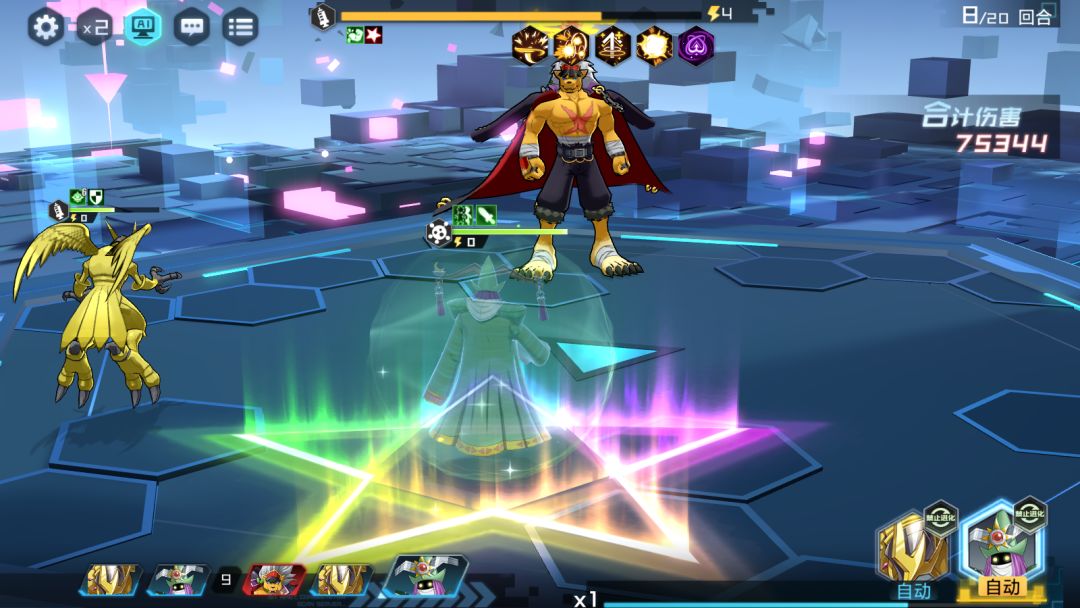 3.自动情况如下,挂自动(贤者兽不使用超频),第六回合贤者兽行动后BUFF空挡AP余1;