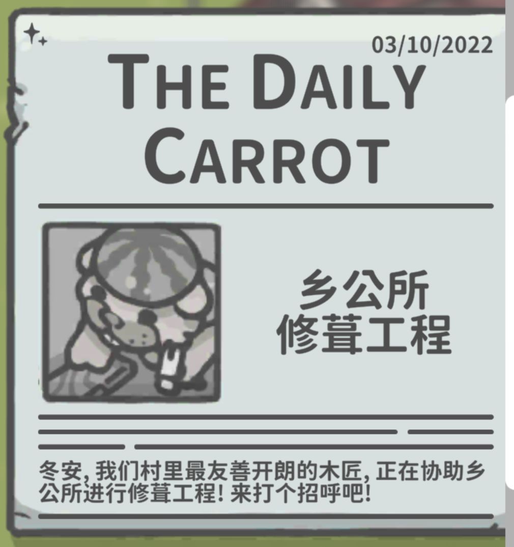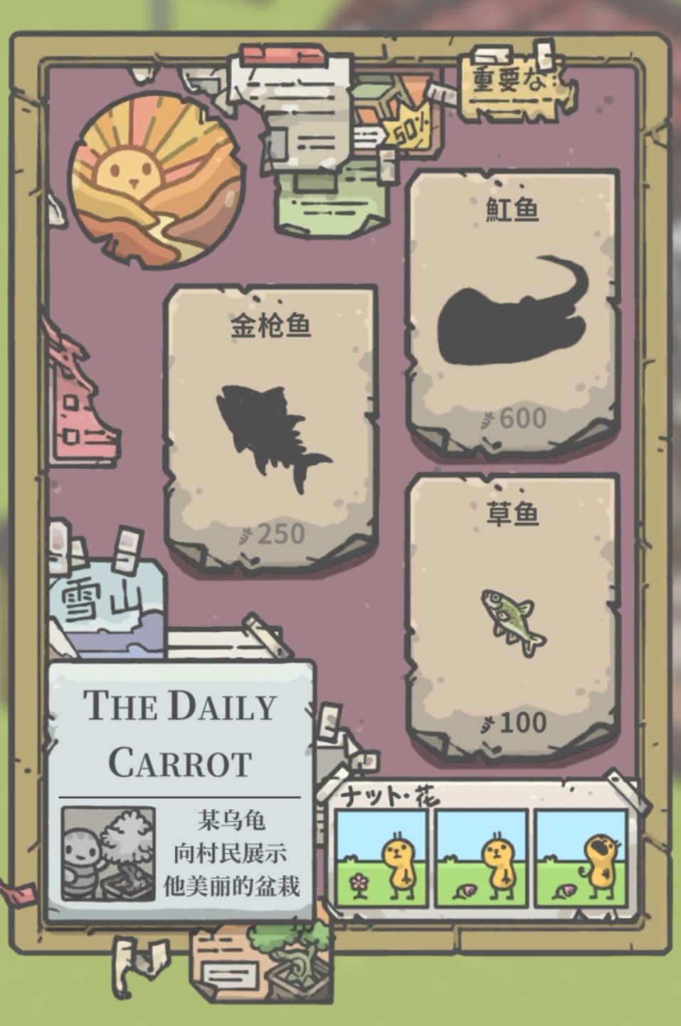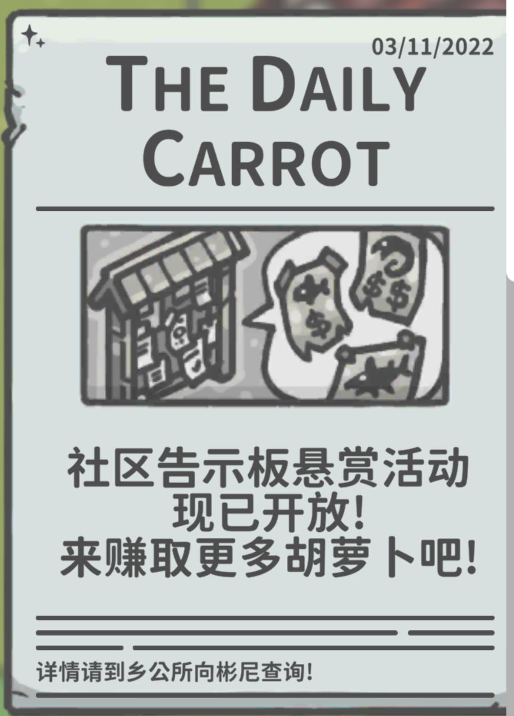在【乡公所】的告示板解锁了用鱼换胡萝卜的活动