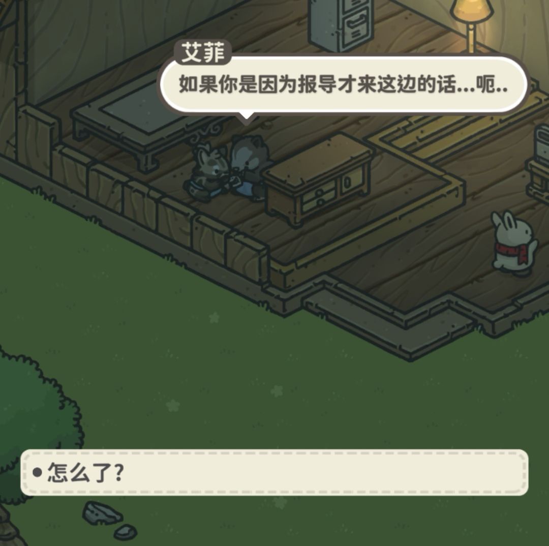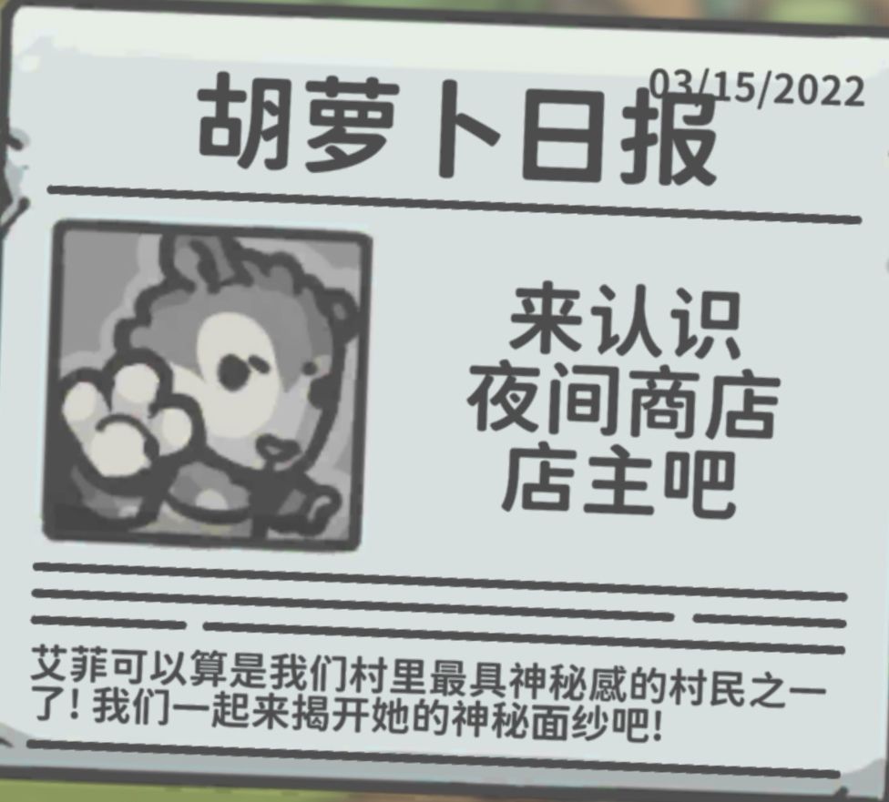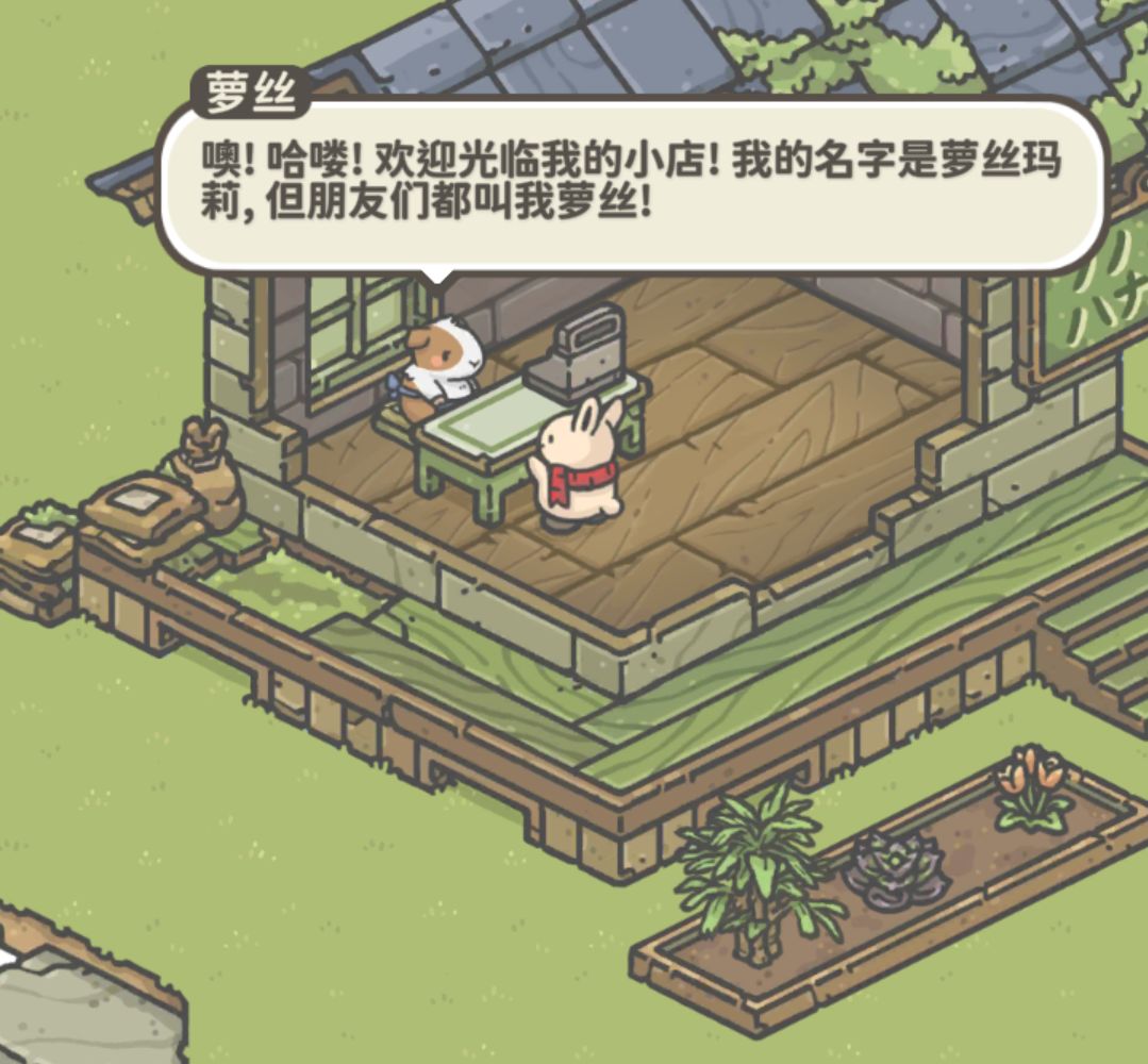 过完新手引导之后,能去的地点会解锁【兔子家】【菜地】【家具店】【乡公所】【码头】,去乡公所会遇到〖长颈鹿阿琪〗