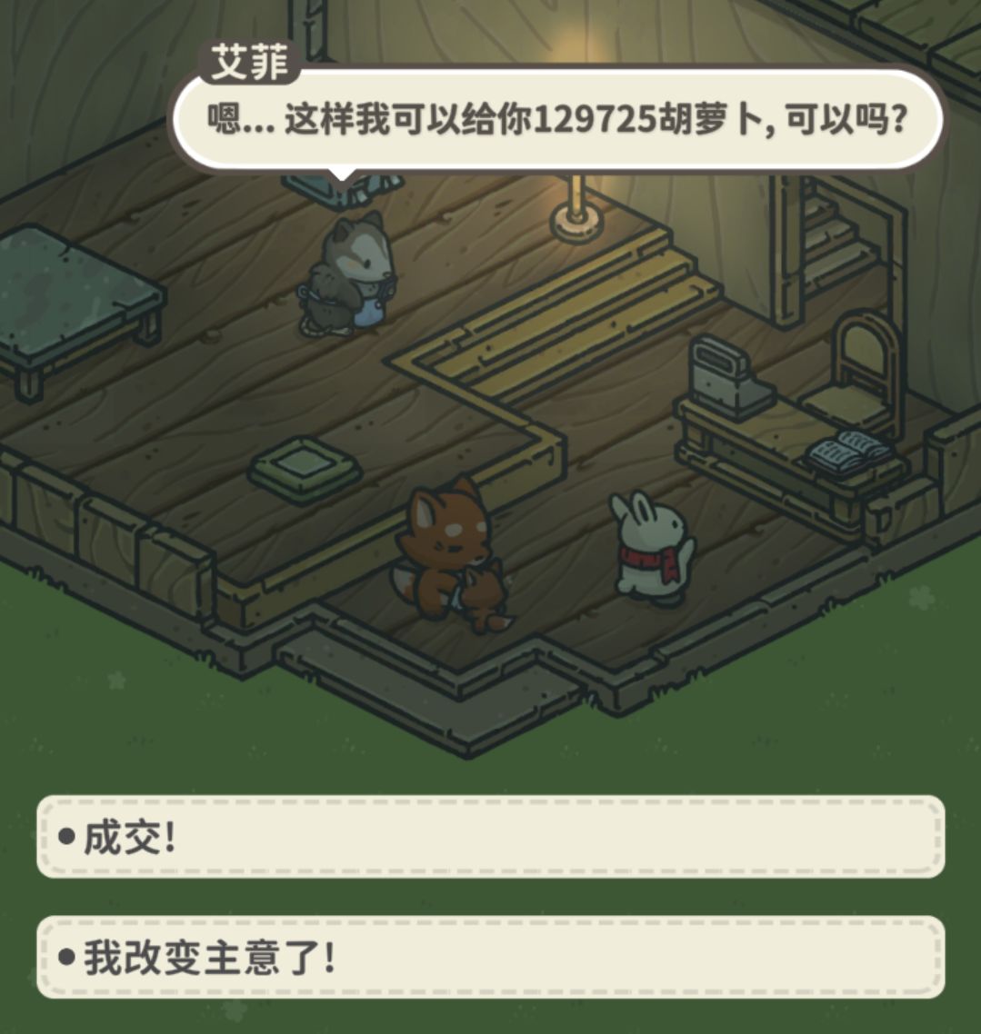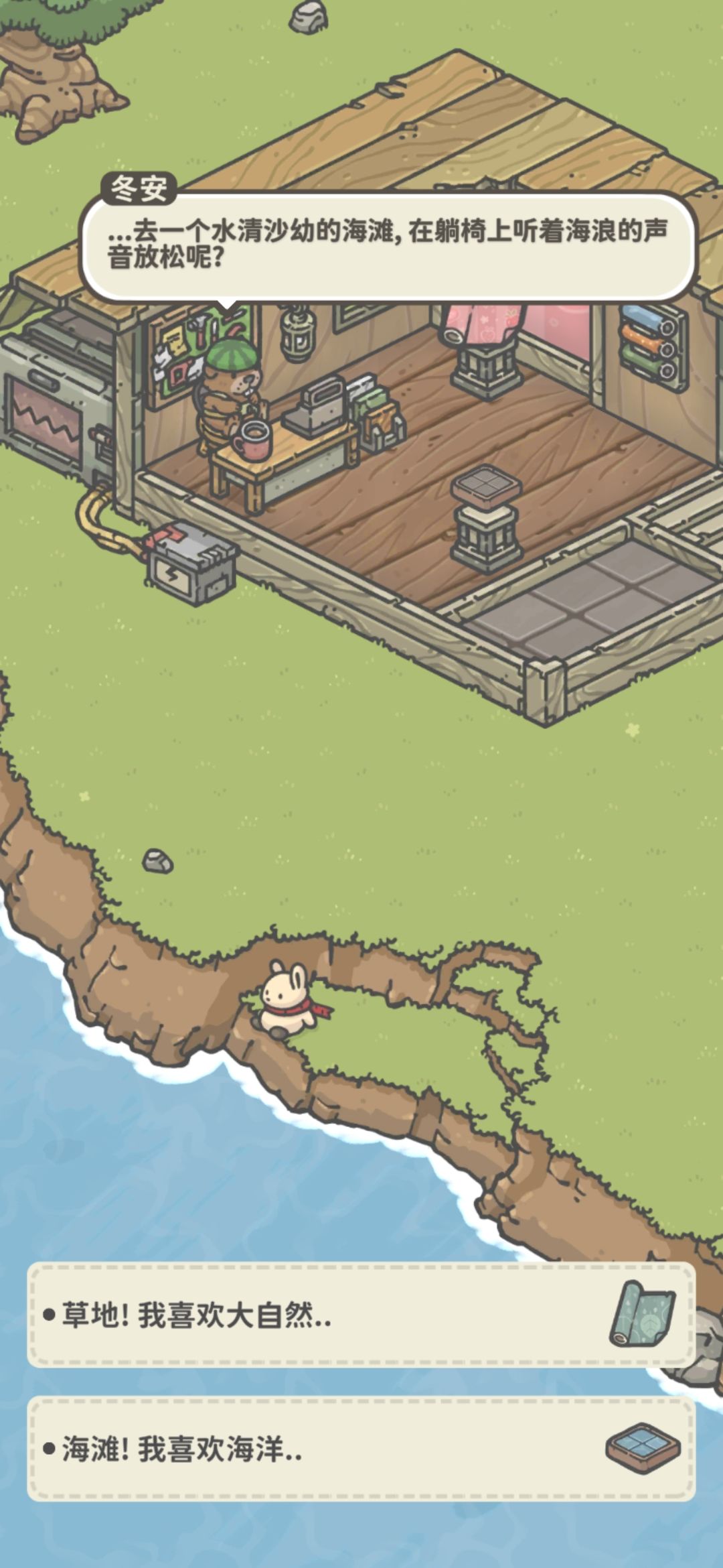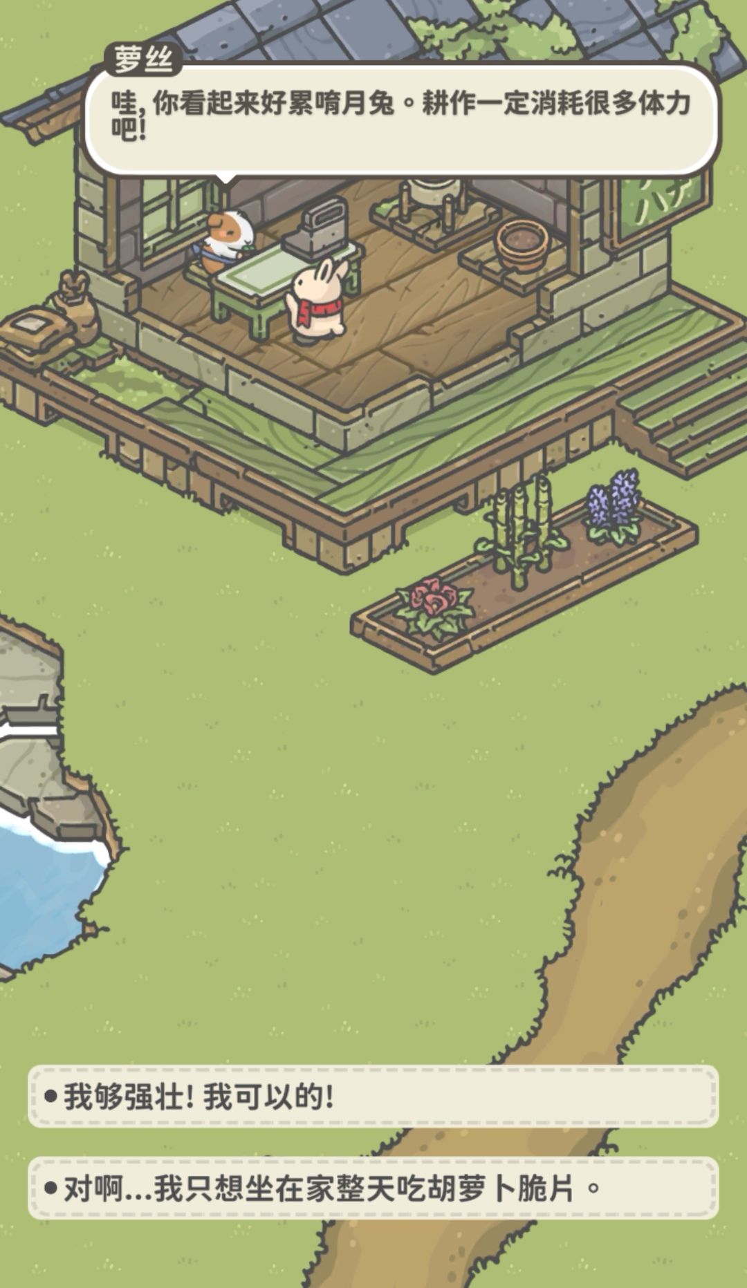 过完新手引导之后,能去的地点会解锁【兔子家】【菜地】【家具店】【乡公所】【码头】,去乡公所会遇到〖长颈鹿阿琪〗