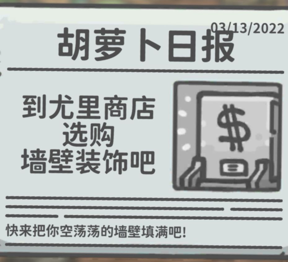 去【乡公所】会遇到正在修墙的冬安,跟它对话解锁地点【装饰店】,可以买到墙纸和地板(如果卖的是木纹墙纸和地板不要买,跟原装的一模一样),下面还可以钓鱼
