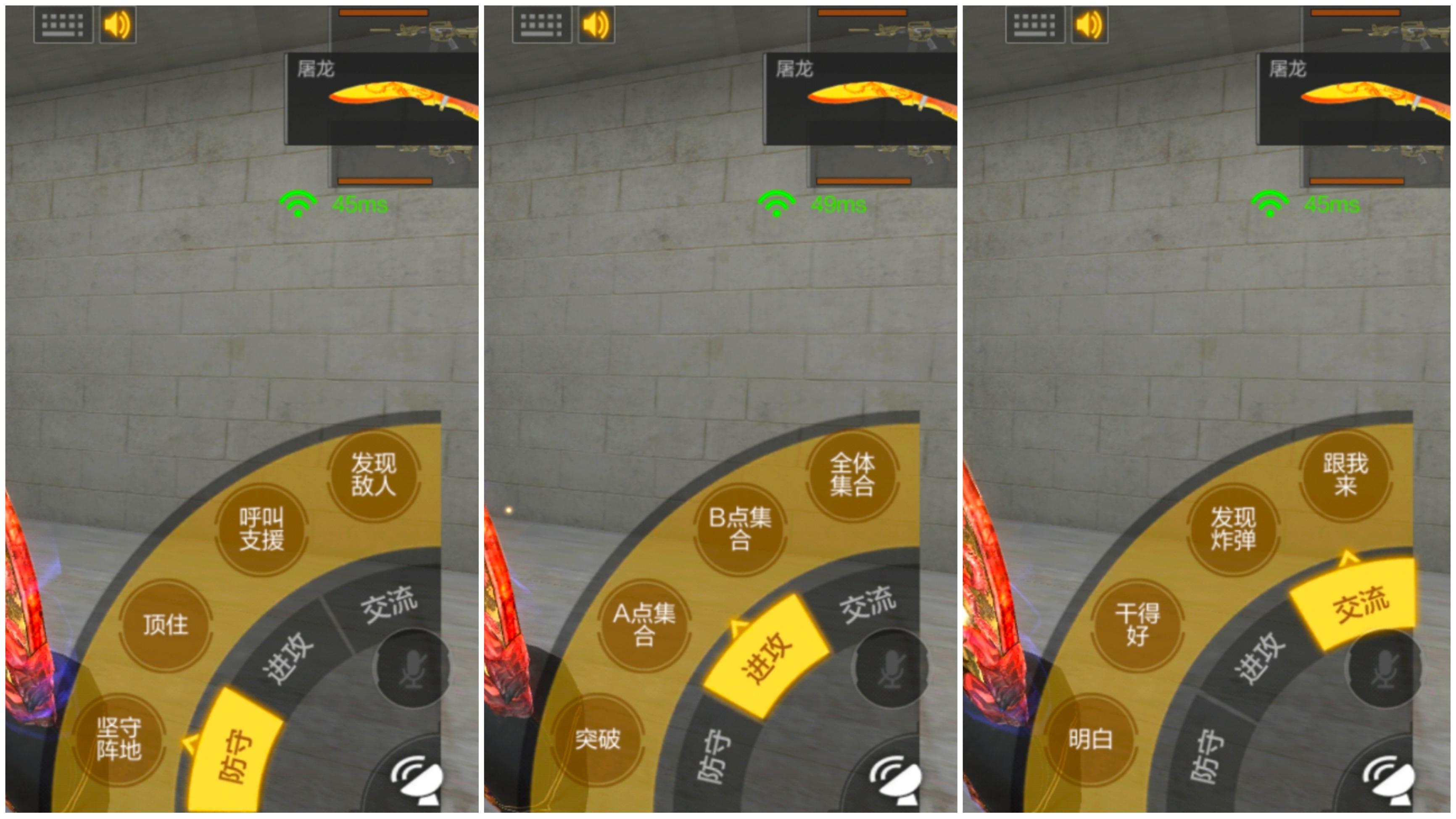 当然仅仅以上的改进是无法满足的,打造一个报点按键才是最快的方式,特别是三指玩家,在与敌人对战的情况下依然可以发送报点信息。我认为这个按键发送的信息最为重要,保卫方发送“请求补位”最为合理,面对敌人感觉自己生命值受到威胁时可以迅速的点击,队友快速补位,了解敌人位置。潜伏方则应该发送“请求补枪”。关于这一点大家有什么好的想法呢?