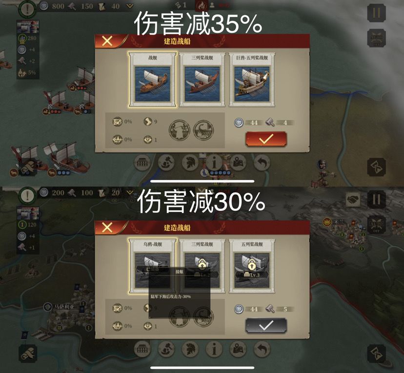 感觉三列桨战舰在游戏里没什么用,性能完全比不上五列桨战舰,也没有冲撞。