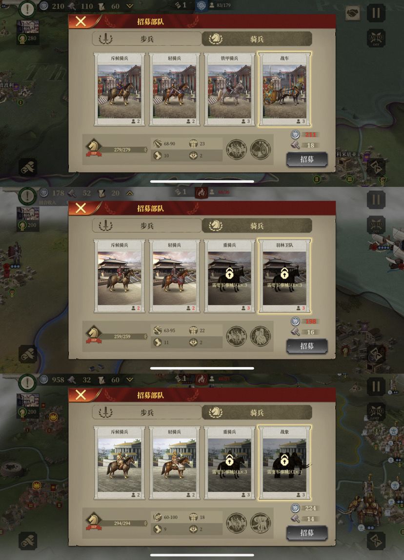 战车和战象强得离谱,羽林卫队有减防技能,咋用咋爽,不做赘述。
