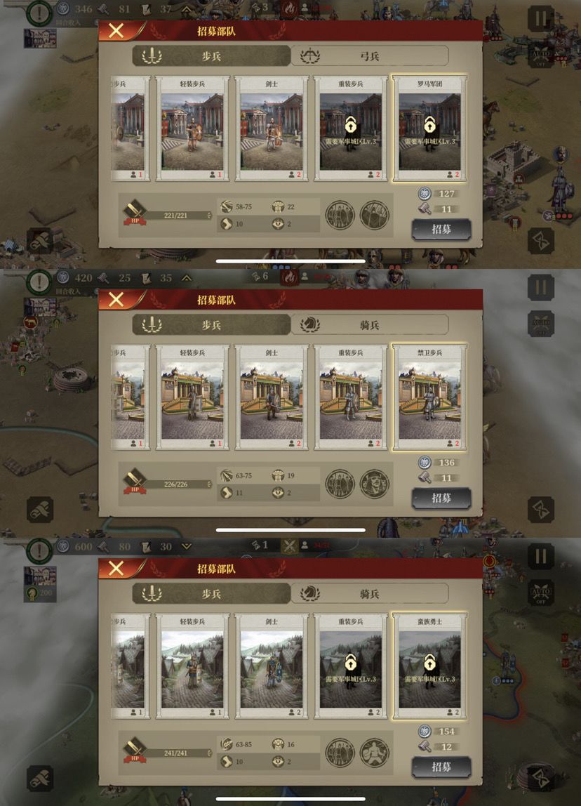 禁卫步兵和罗马军团相比,平均伤害略高,护甲稍低(不过e🐍护甲无用论,这点差别可以忽略),但行动力更高。这使得禁卫步兵的实用性比罗马军团更高。