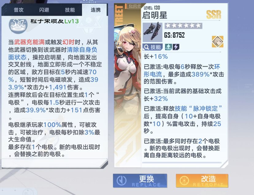 5星释放小技能后,提高自身(10+自身电极数*10)%雷攻持续25秒,简单来说就是释放技能提高自身10%雷攻,一个电极再加10%雷攻,两个电极再加10%雷攻,6星一共加30%雷攻