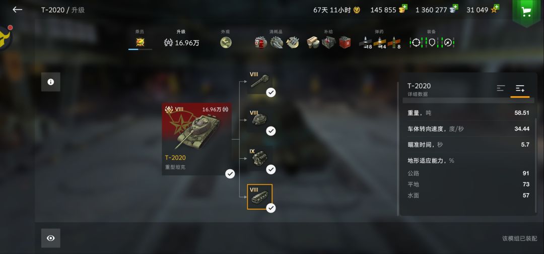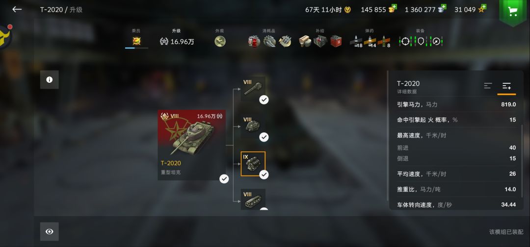 车体转速上有34.44度/s在所有7-9级重坦当中还是很不错的。