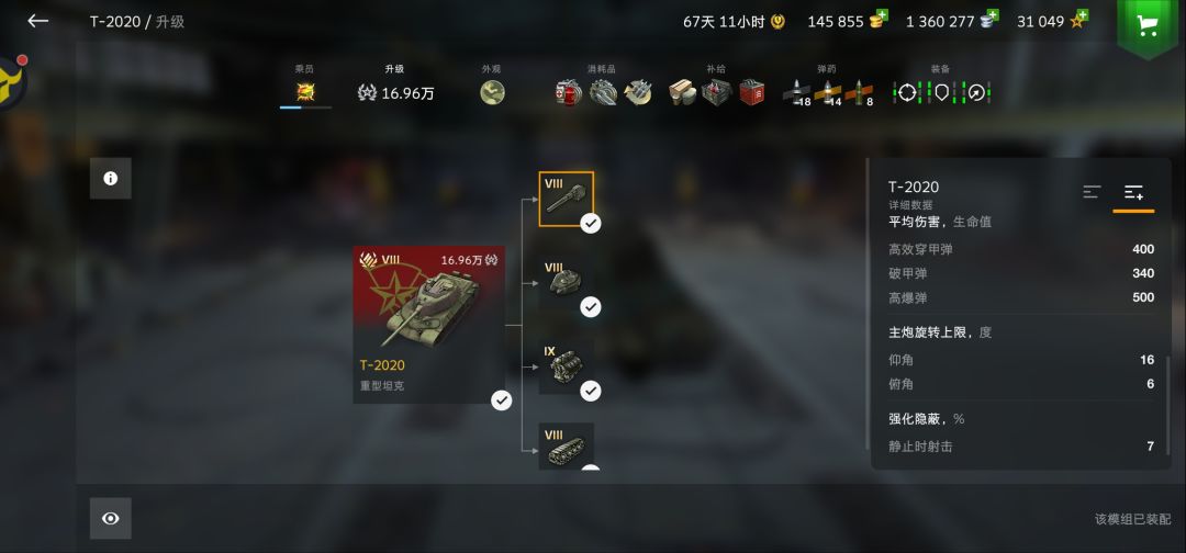 虽说主炮名称改变了,但是它还是继承了苏系祖传122炮的特点🌚,满配件5.7的缩圈,.355的精度让我梦回-6,原穿甲能力不是很好,进9级房或者面对近版本8级热门车虎王之类的以及前几天卖的法虎,在没加穿深的情况下上金币弹也有很大的几率打不穿,所以这里我推荐加穿深。