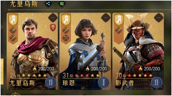指挥剑:主将尤里乌斯(7天签到+活动攒星给,没有的时候先用魏兰凑后续抽到鬼子就用鬼子,鬼子用替代品)+琼恩(开局送的2选1的女武将)+影武者(鬼子,特别好抽,抽啥卡池都可能送你个。。。没有鬼子先用李道玄统率+剑的紫将好抽 凑)