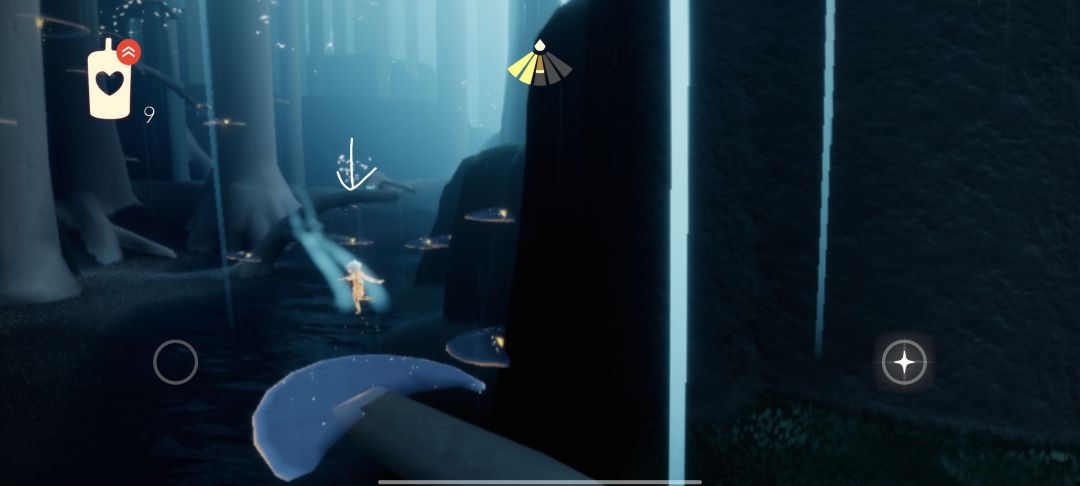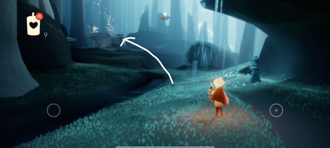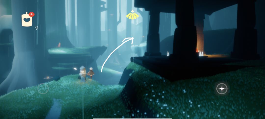 然后来到箭头所指的荧光小菇上面站着(因为等的时间会有点久,可能会变成小黑)等火之灵过来就好了