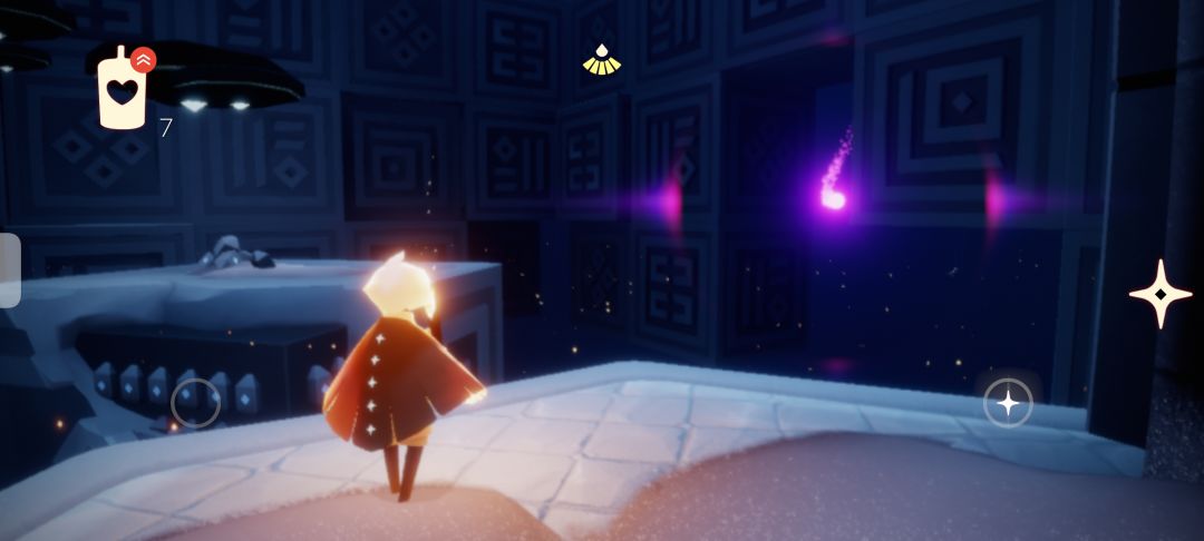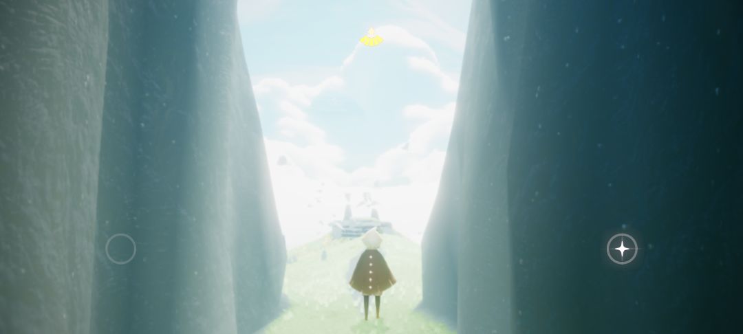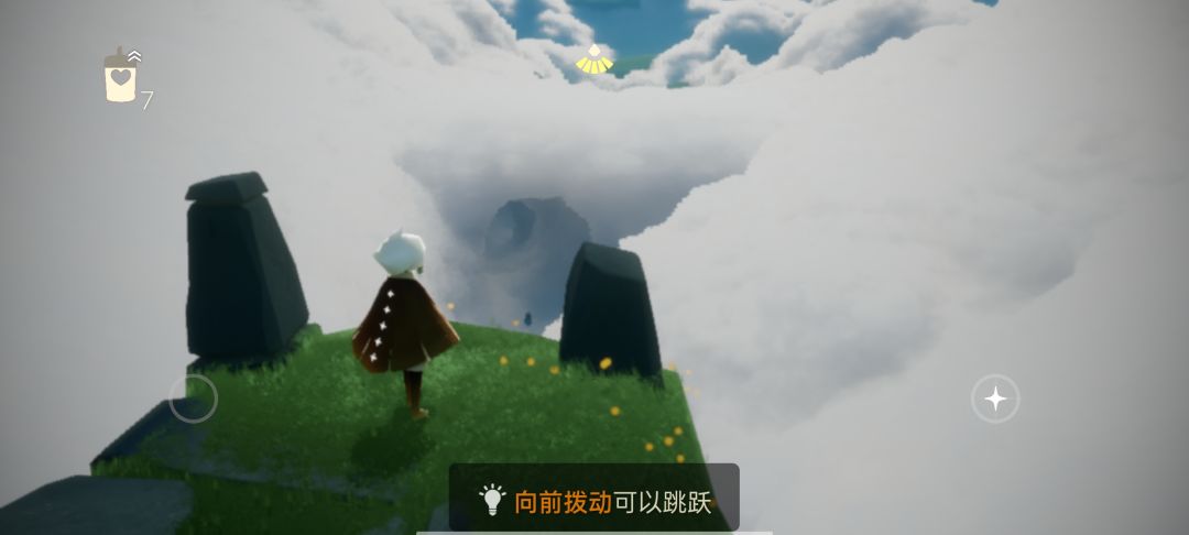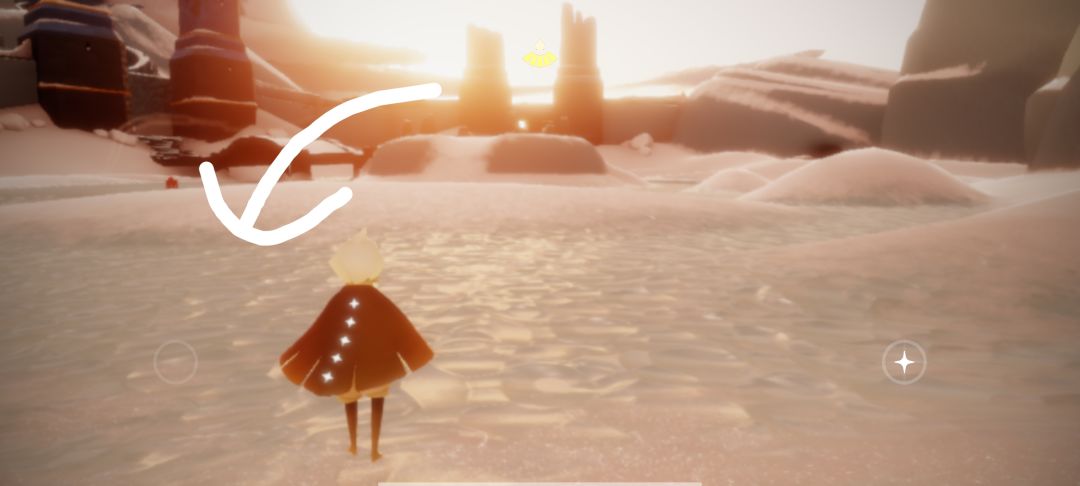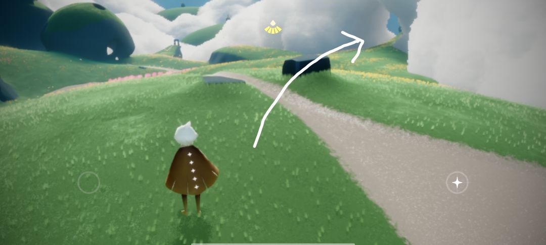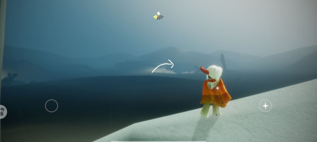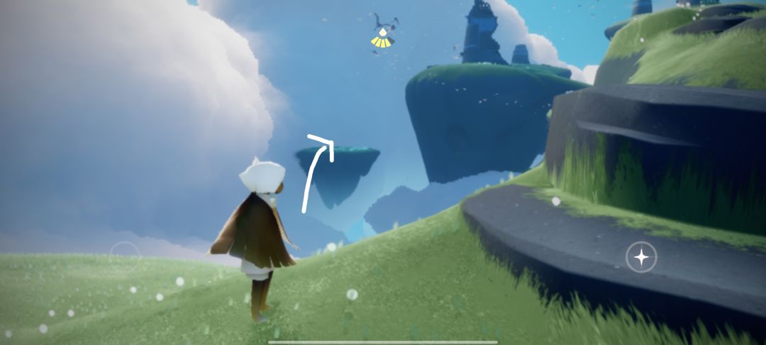 来到蝴蝶平原后向箭头所指的洞里飞(进洞需要先找到四个先祖,如果没有的话可以尝试从旁边云层较低的地方飞过去)