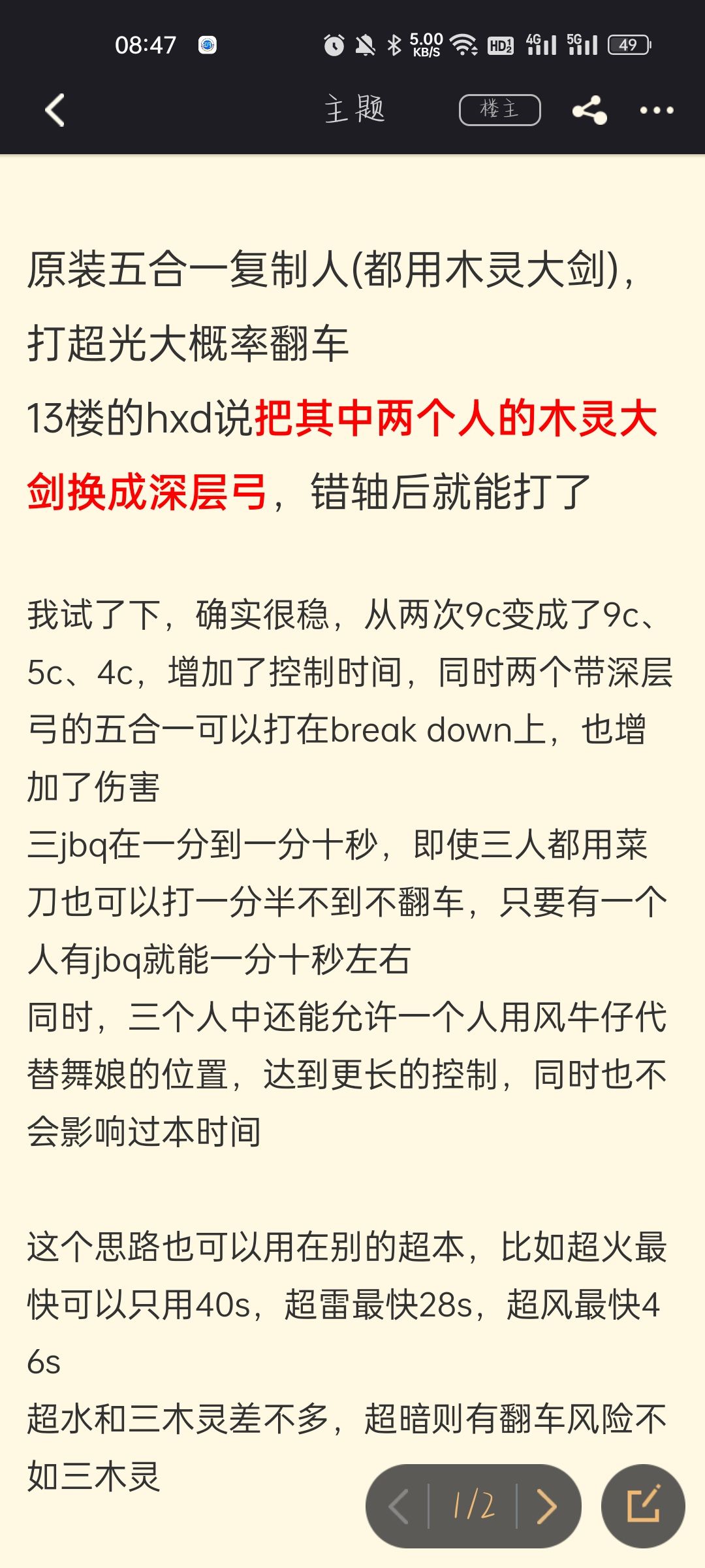 没有jbq的话就用菜刀,但深层只建议打雷和光(雷50+、光1分20),其他深层会到接近2分甚至翻车