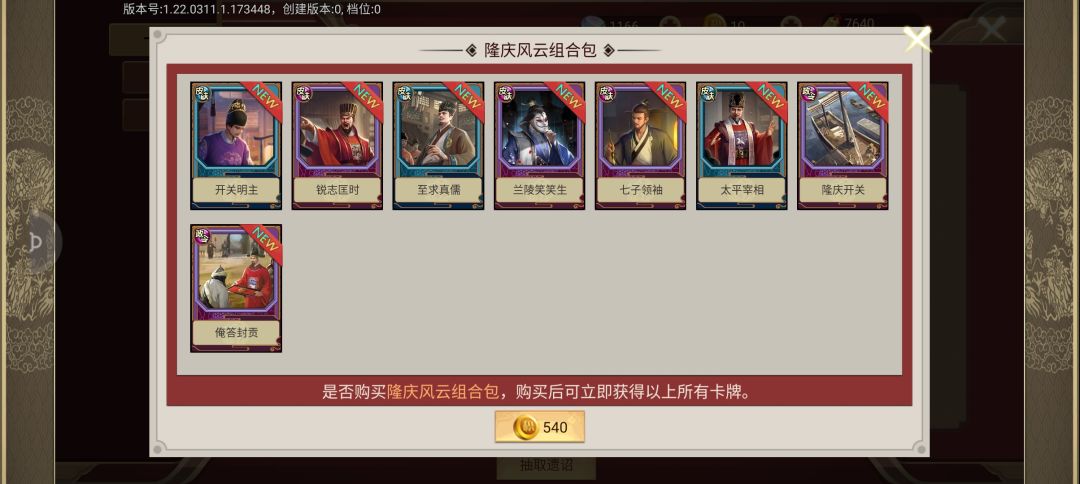 隆庆全卡包分析