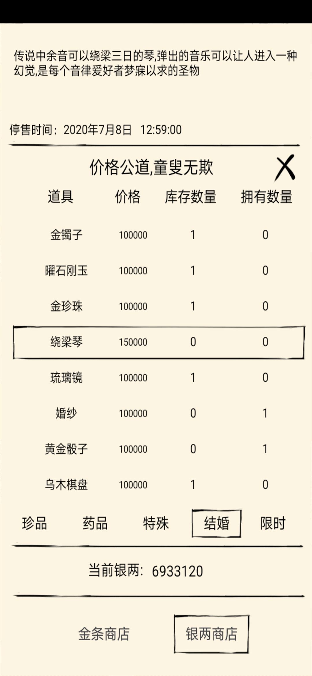 道具二:婚纱,奇货商银两商店