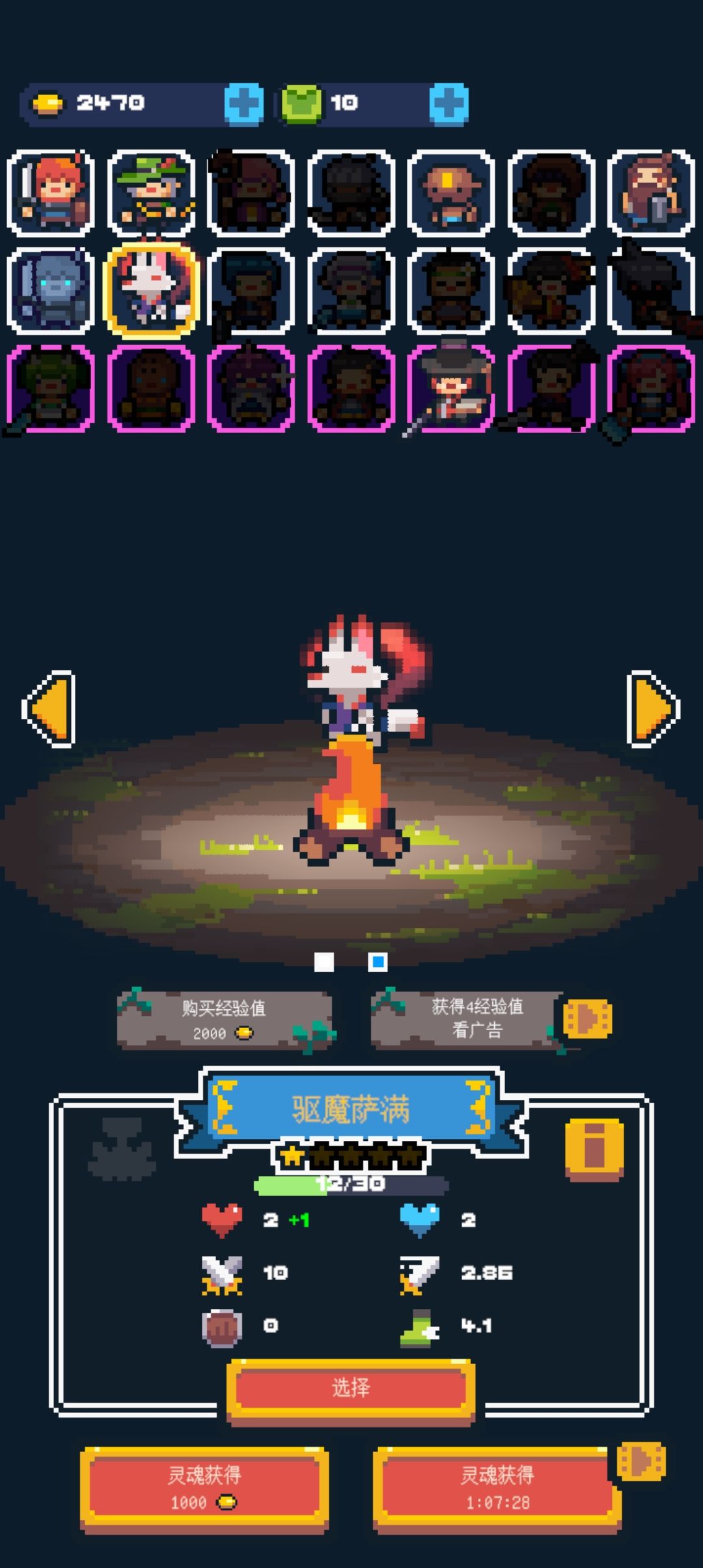 2金币多余可以买人物,最强人物是矮人和萨满(狐狸)。矮人前期加速攒石头,萨满60%概率双祝福很强,便于通关。拿到这俩其实就不太需要抽人物了。