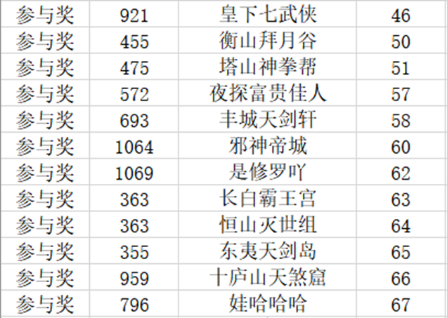 气贯长虹(金奖)(6名):(金条x600+地煞宝箱x1+银针x100+大力丸x30)