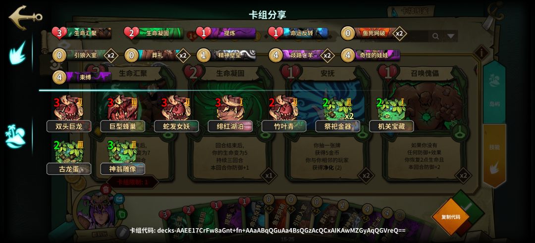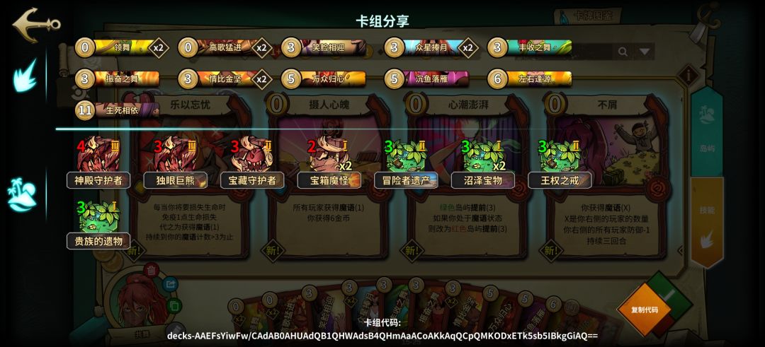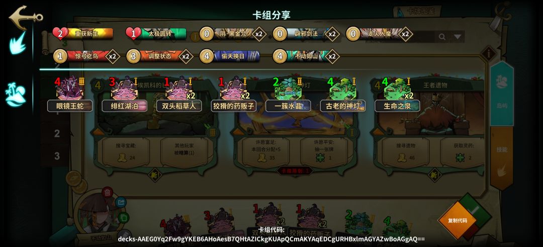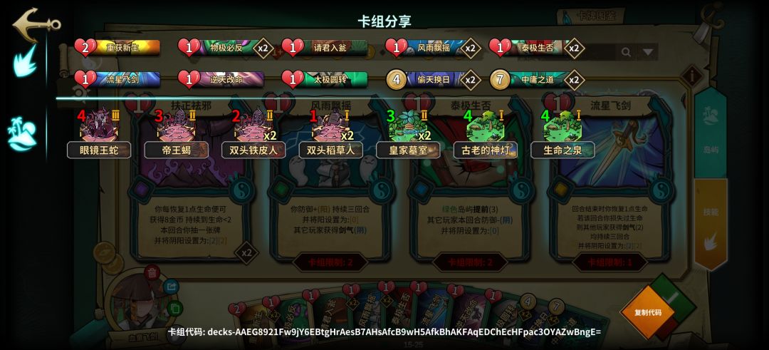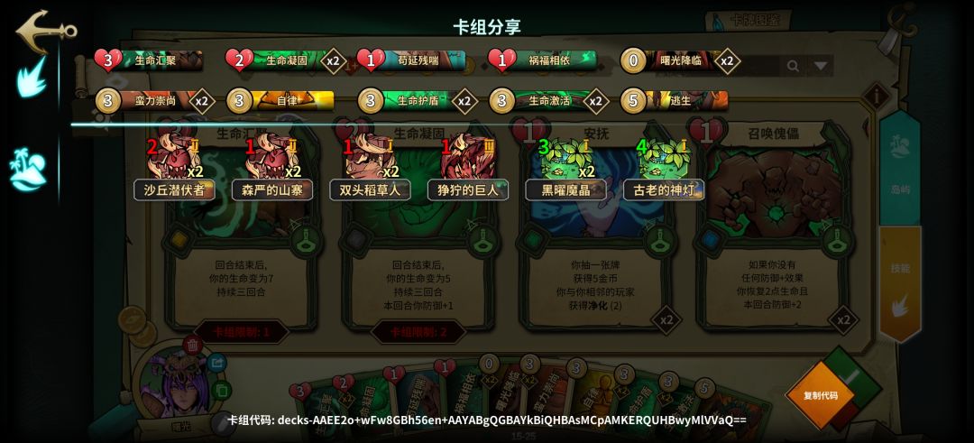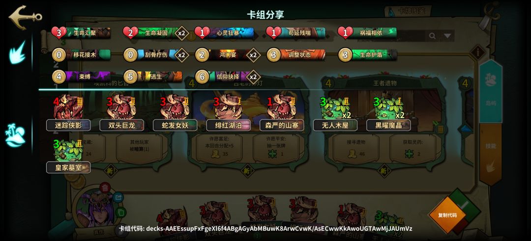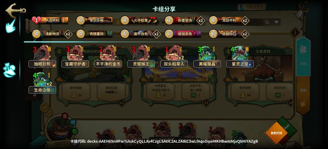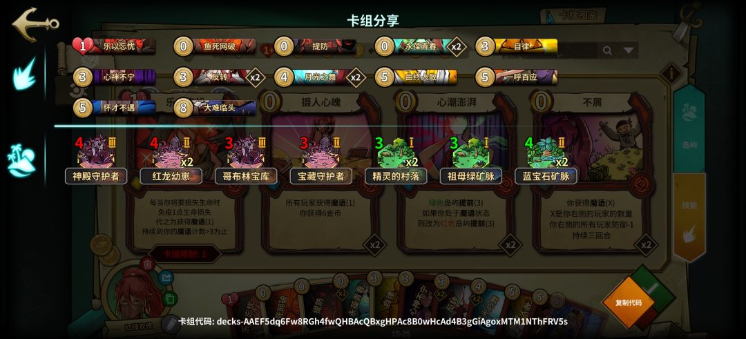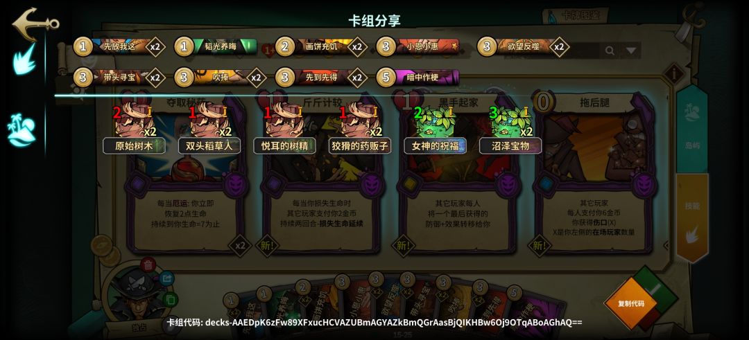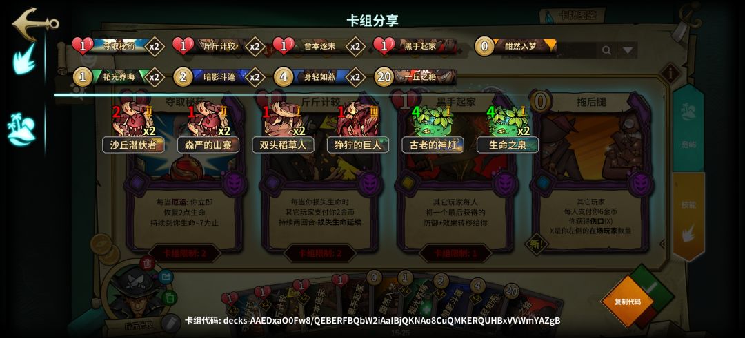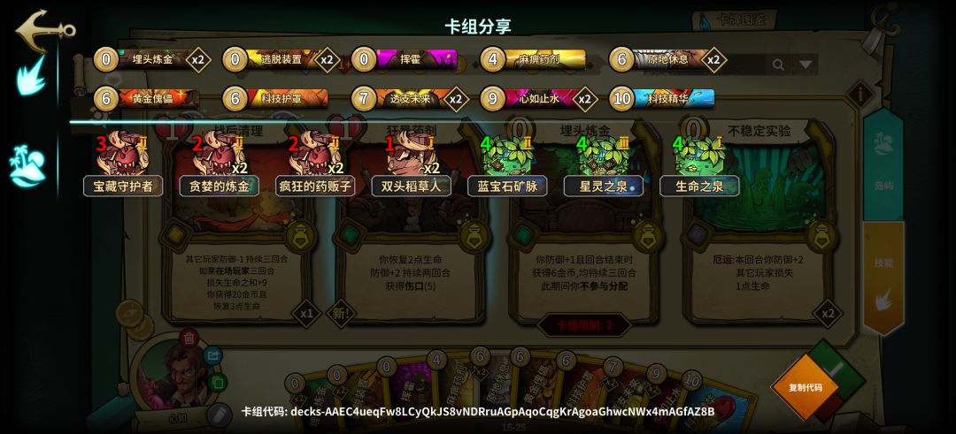 1.0版本属于低配,岛屿不足无法提供足够的过牌,所以在技能牌上提供过牌