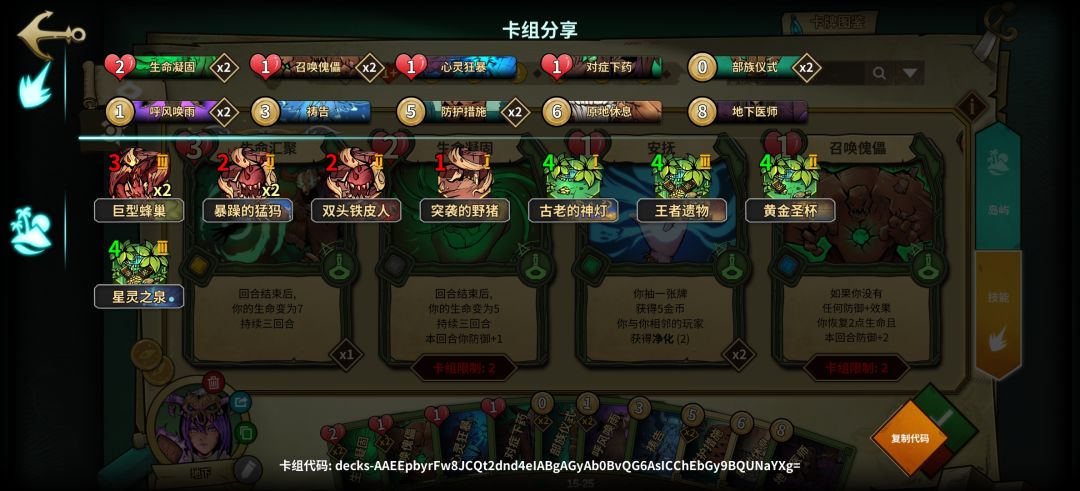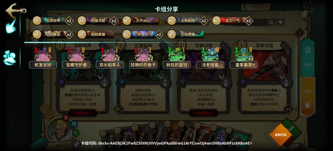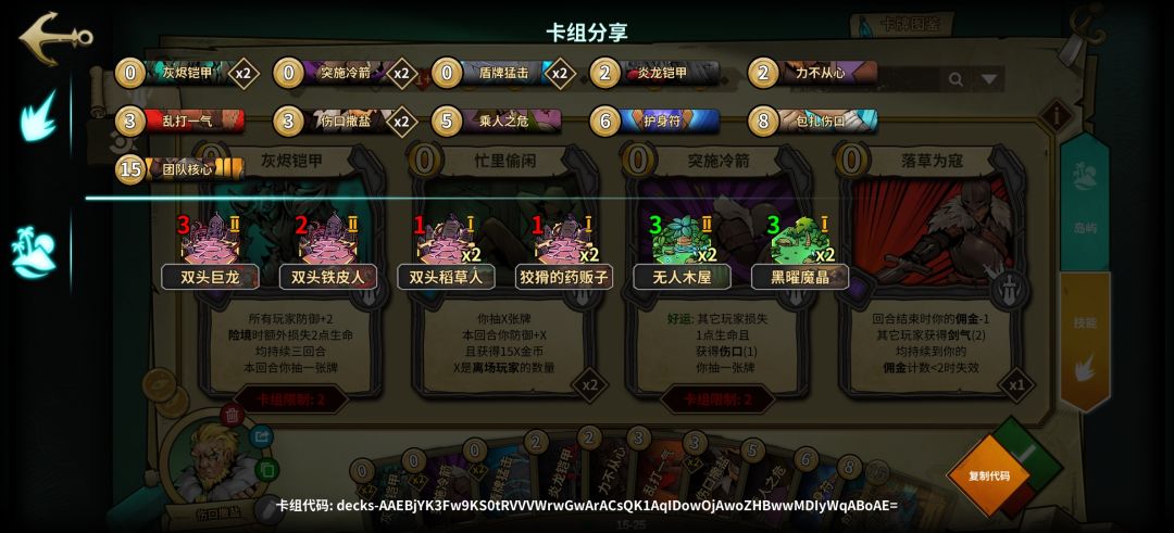 通过各种手段打真伤,红绿岛都可以套伤口,配合伤口撒盐磨血,灰烬铠甲配合护身符在黑岛造成额外伤害而保自己周全,还有有六张技能卡提供过牌,娱乐性极强