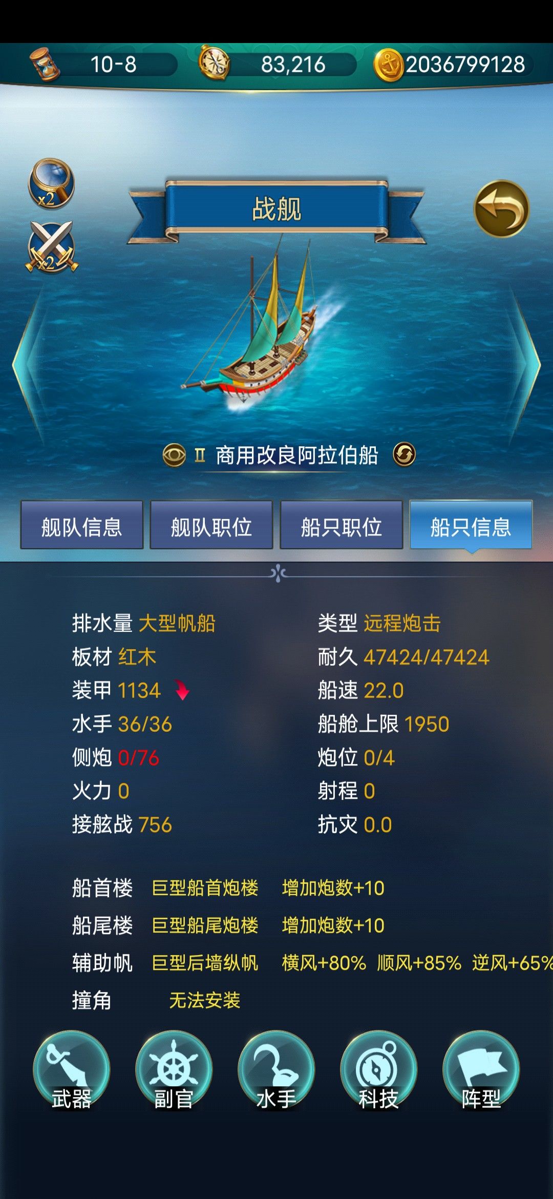 下面是我选择的,强化改造后的东印度炮舰和福船商船