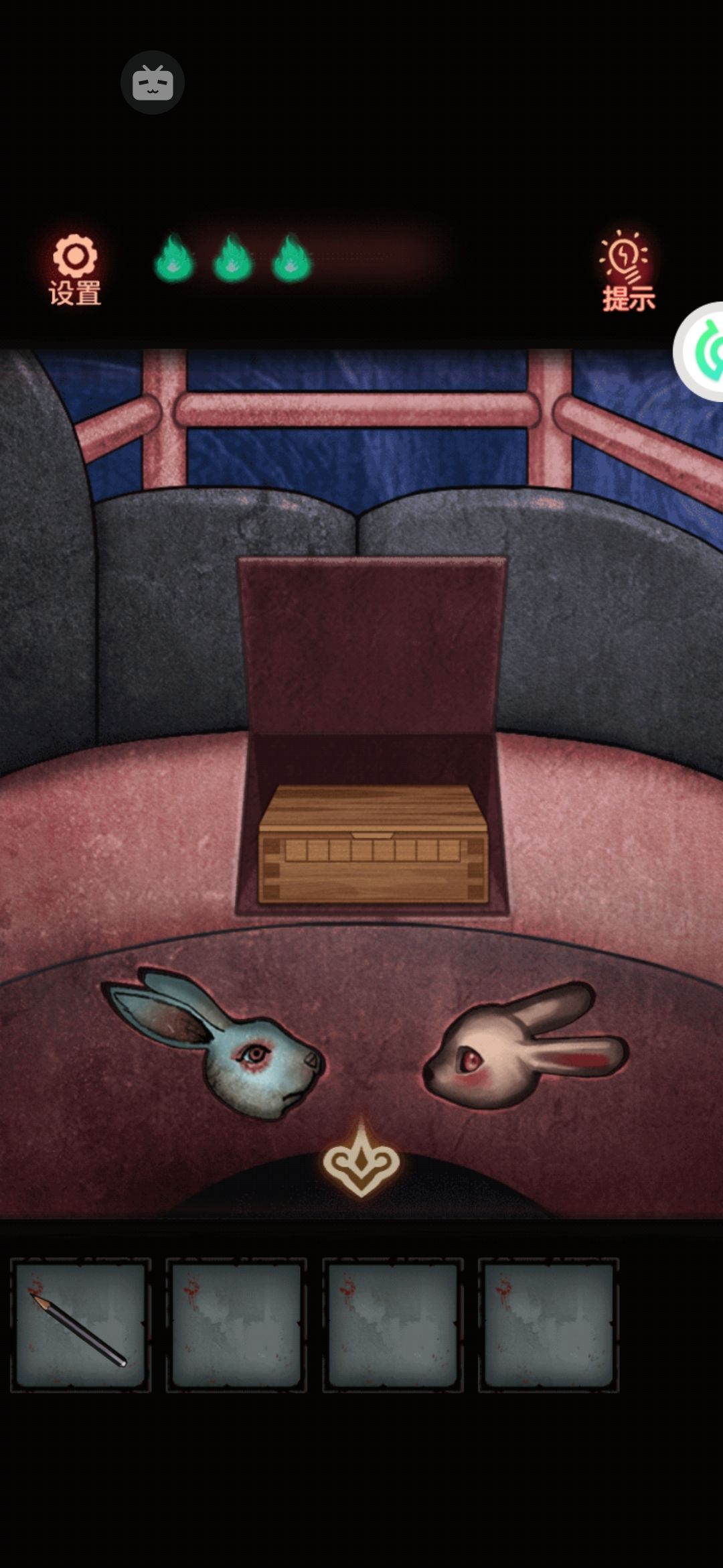 再点两次控制杆把初始的那个摩天轮摇下来。里面有俩兔头凹槽,安上兔头之后出现一个盒子。