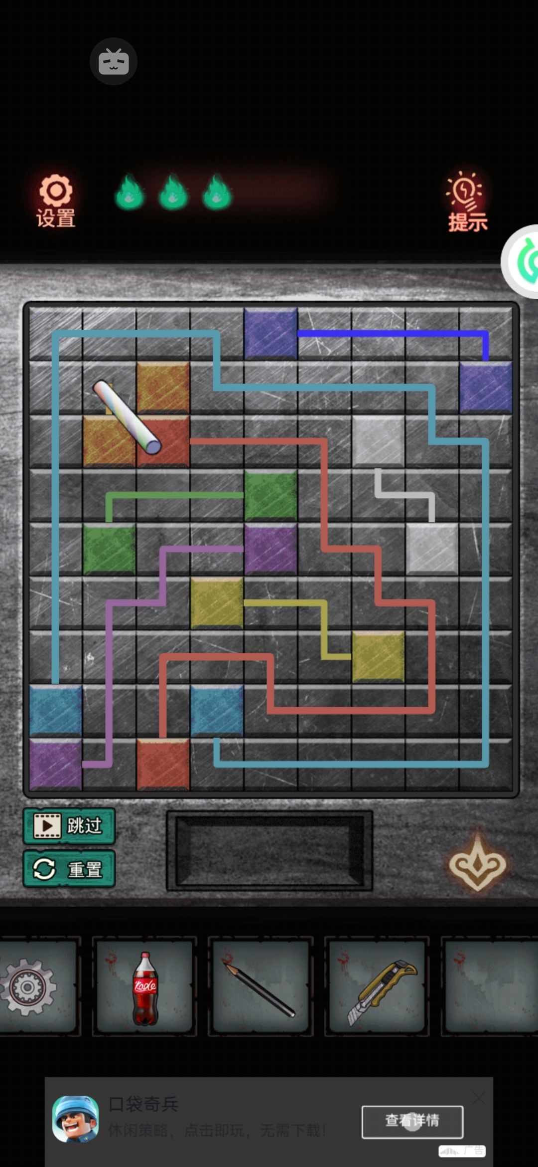 7。进了游乐园,先捡一下右边扑克门卫jio底下的镊子。一眼就看到大兔兔,拿着个什么板子嗯?链接色块。优先把最外围的连上,再往里面拐,外面的能贴边边绕就贴边边。解开后兔兔的头突然就掉了