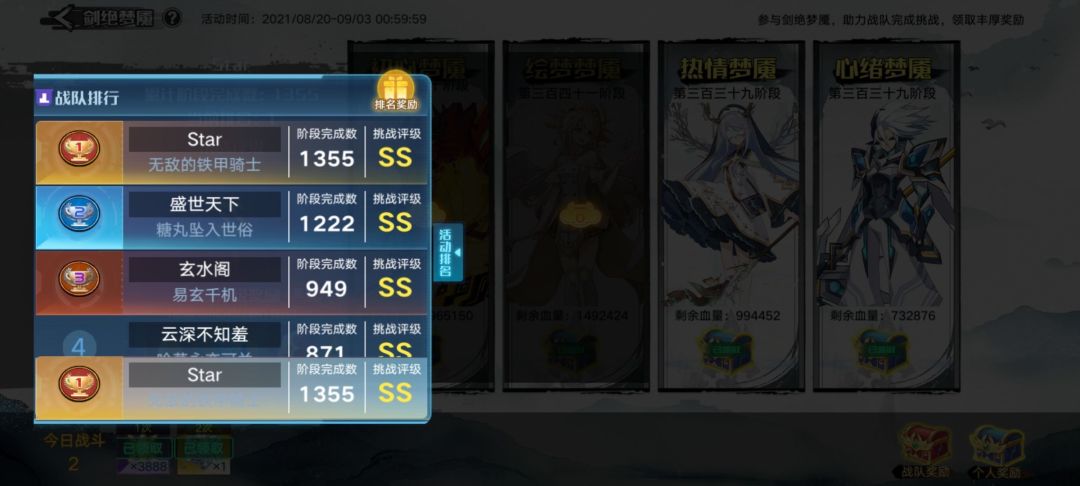 前三前十在榜战队:奥拉星战队,梦之队,划龙舟,诸王议会,仙盟