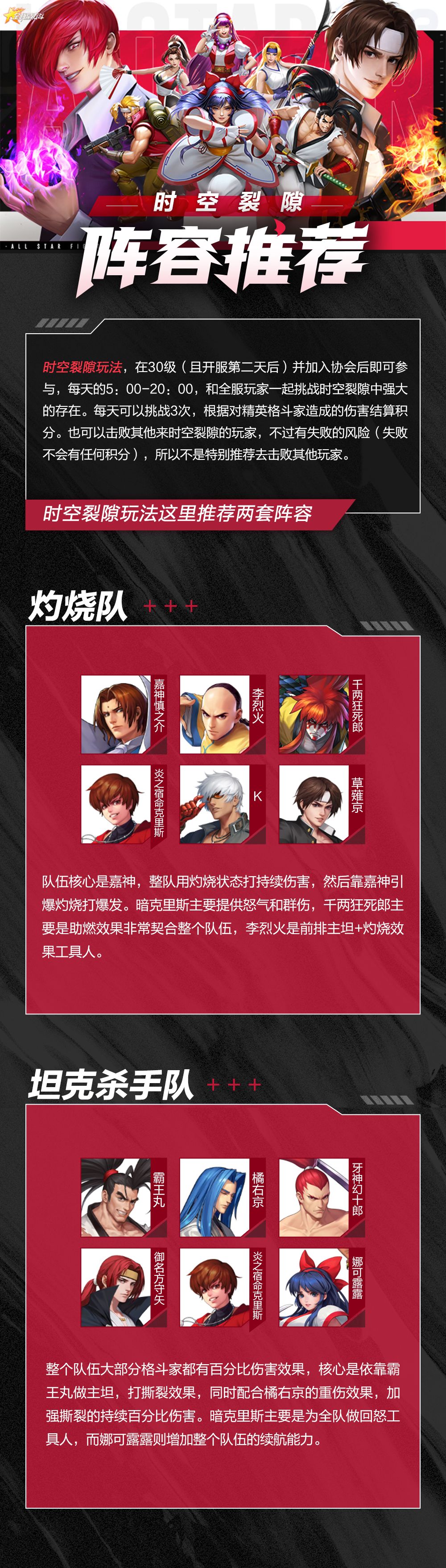 格斗经纪人们大家好,「时空裂隙」是协会玩法中非常重要的一部分,也是很考验各位阵容搭配的关卡,今天由