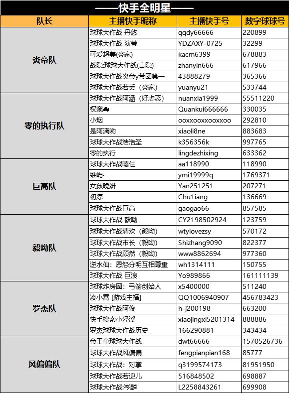 这次全明星主播大师赛,球球官方也是邀请了许多老牌主播,各短视频平台都有他们的操作身影!以下内容不分先后: